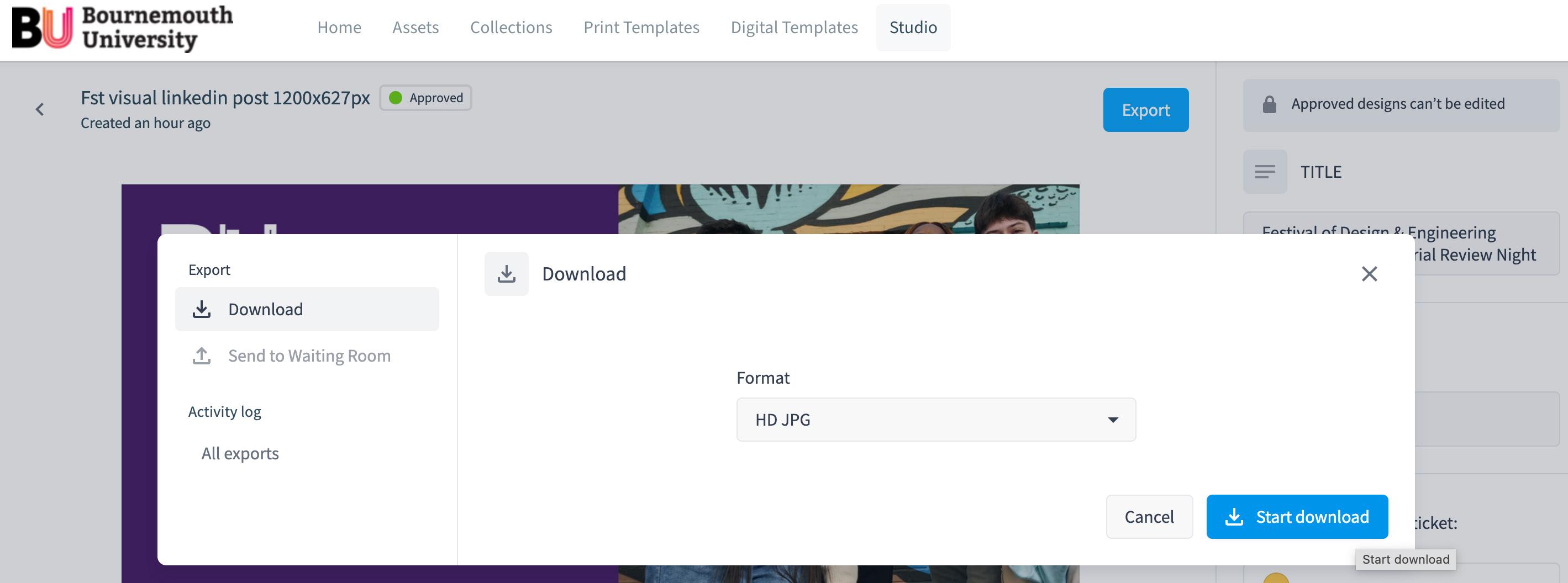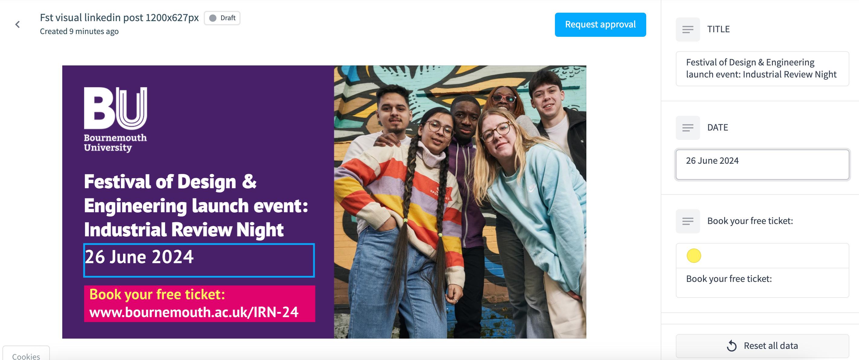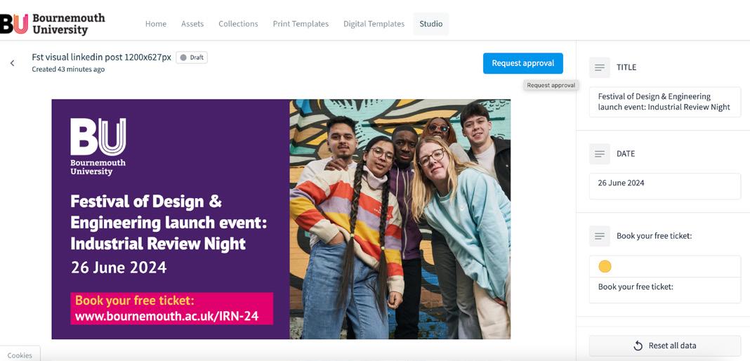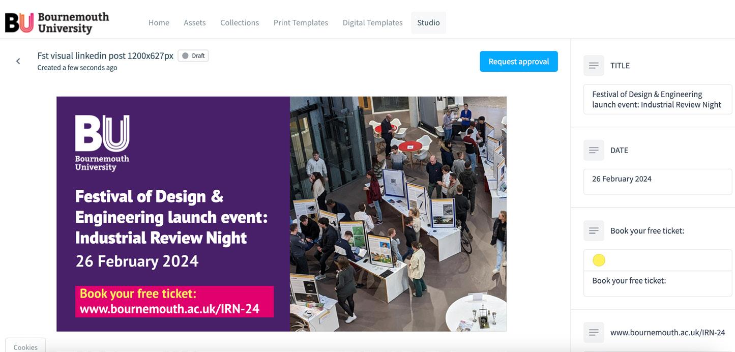 • You can fill in the fields in the template, updating them with new images and content to meet your needs. Your project will then be checked by the Design Team for consistency as a final check.