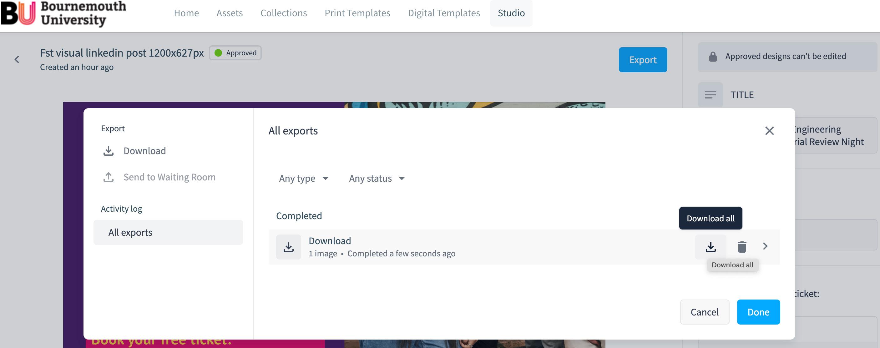 17. On approval, you will receive email notification from the design team and your design will appear as ‘Approved’ with a green dot