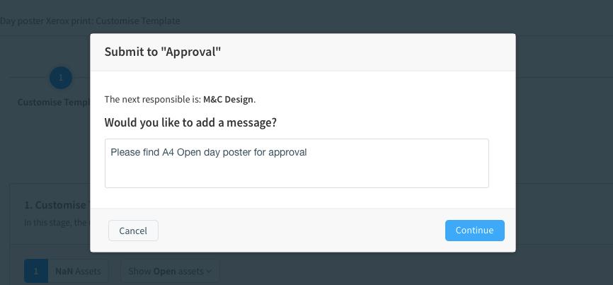 A Request approval pop up will appear. Any relevant information can be included here. An email notification will be sent to the approvers.