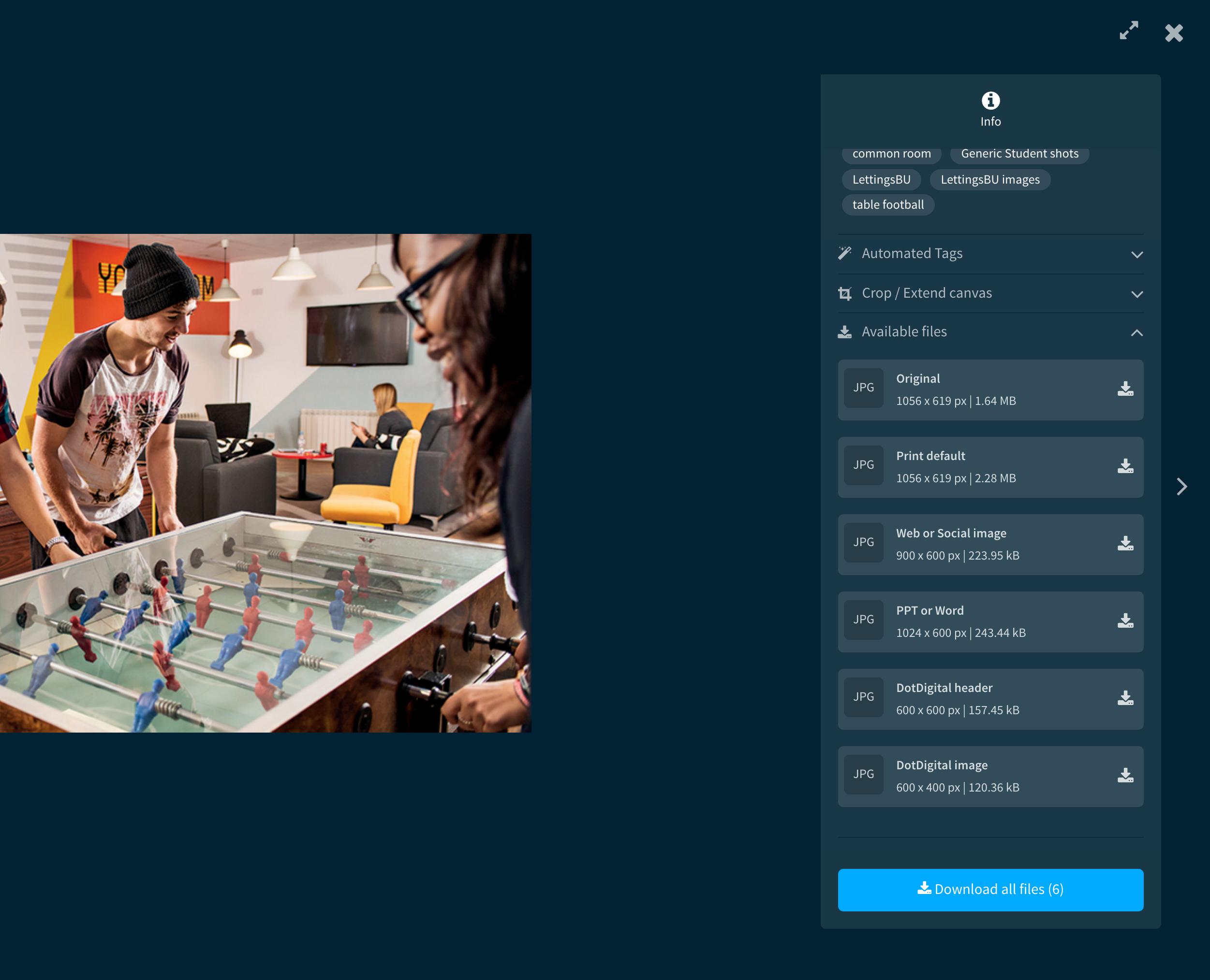 A derivative is an alternative version of the original asset. For example, images suitable for web and social, PPT, word or DotDigital. These are predefined sizes suitable for those media.