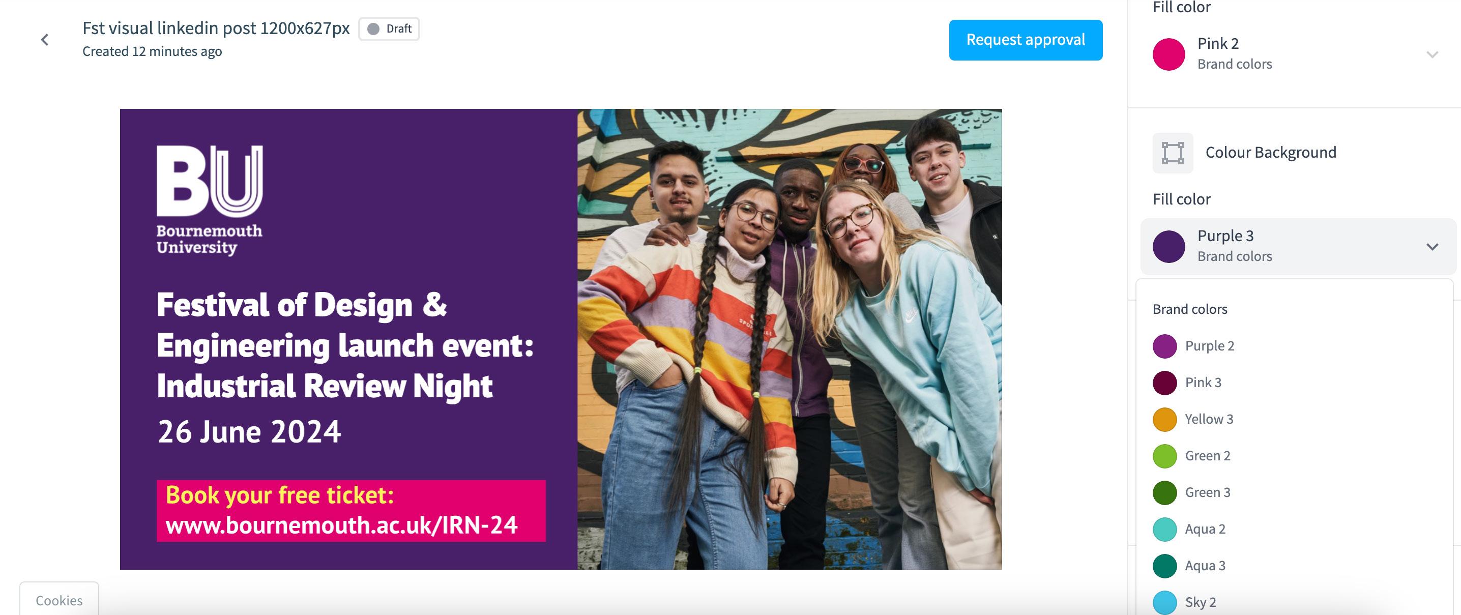 10. You can amend the background colours by clicking in the sidebar drop-down menu and choosing the BU brand colour you require.