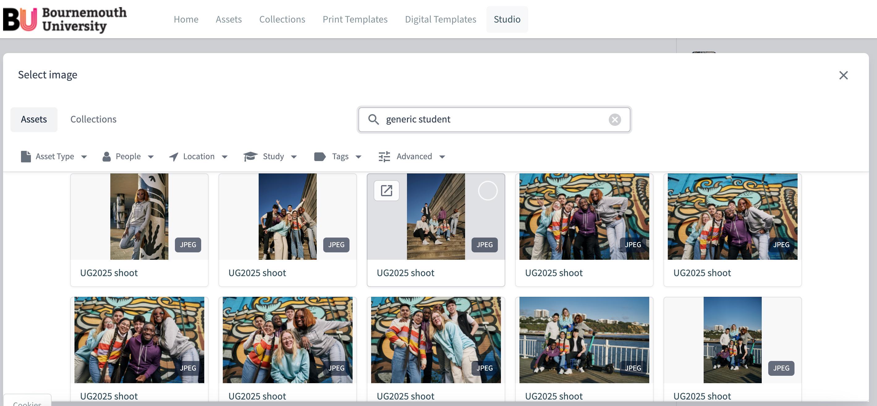 2. Select the product or campaign you want to create a print asset for (poster, postcard or UG2021 campaign etc)