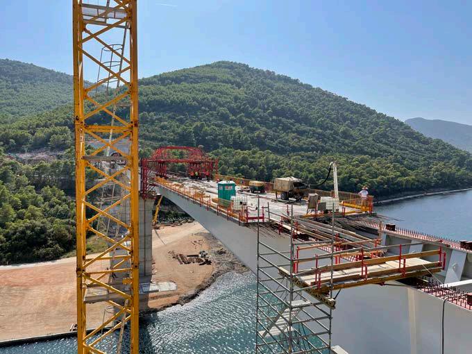 | 33CONSTRUCTIONΣΕΠΤ Ε ΜΒΡΙΟΣ 2022 Τ ίποτα από όλα αυτά όμως δεν θα μπορούσαν να γίνουν πραγματικό τητα, αν δεν αναλάμβαναν κορυ φαίοι κατασκευαστικοί όμιλοι, μεταξύ των οποίων και η ελληνική ΑΒΑΞ, τις εργασίες της γέφυρας και των συνοδών οδικών αξόνων πρόσβασης στη βαλκα νική χώρα. Συγκεκριμένα, η υποδομή των 550 εκατομμυρίων ευρώ (εκ των οποίων τα 357 εκατ. αποτελούν τη συμβολή της Ε.Ε.) δημοπρατήθηκε σε τρεις εργολα βίες, εκ των οποίων η ελληνική κατασκευ αστική ΑΒΑΞ εκτέλεσε την εργολαβία για την «κατασκευή της παράκαμψης STON (DC414)», ενός έργου με ιδιαίτερα υψηλές απαιτήσεις στην κατασκευή των γεφυ ρών και σηράγγων του δρόμου ταχείας κυκλοφορίας. ΣΤΑ ΣΧ Ε ΔΙΑ ΑΠ Ο ΤΟ 2016 Η κατασκευή της γέφυρας μήκους 2.240 μέτρων, ύψους 55 μέτρων και με δύο λωρίδες για οχήματα αποτελεί δικαίως το μεγαλύτερο έργο της Κροατίας από τη διάλυση της Γιουγκοσλαβίας το 1991. Αν και είχαν γίνει όμως δύο προσπάθειες να κατασκευαστεί από τοπικές εταιρείες πριν από το 2016, εντούτοις τα σχέδια δεν Ηευοδώθηκαν.απόφασηγια