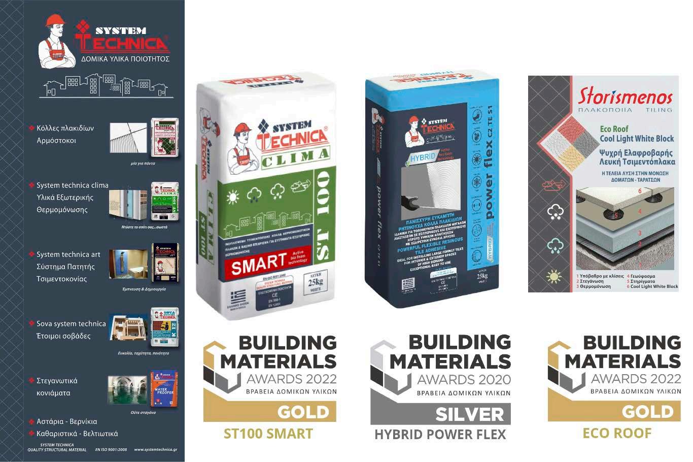 ρικής θερμομόνωσης και οι κόλλες πλακιδίων είναι αντιπροσωπευτικά δείγματα υλικών που βασίζονται στην αιχμή της τεχνολογίας και εξασφαλίζουν το καλύτερο απο τέλεσμα. ■ Κορυφαίες διακρίσεις για τα προϊόντα της System Technica στον θεσμό των Building Materials Awards