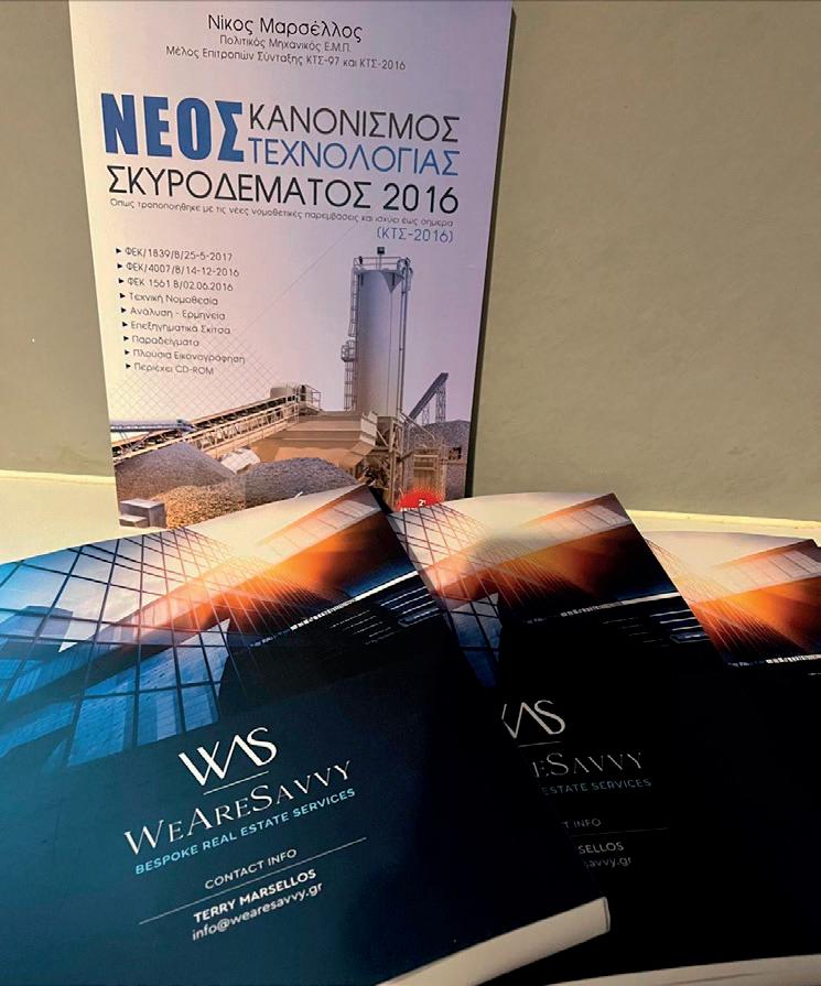 Το μεσιτικό γραφείο WeAreSavvy κάνει ένα βήμα πιο κοντά σε όσους κατασκευάζουν με μεράκι, αισθητική και με τις υψηλότερες προδιαγραφές. Όντας σύμμαχος στη δύσκολη καθημερινότητα της κατασκευαστικής αγοράς, επενδύει σε μια έκδοση που αφορά τον Νέο Κανονισμό Τεχνολογίας Σκυροδέματος 2016, και θα τον διαθέσει δωρεάν σε κατασκευαστικές εταιρείες δείχνοντας έτσι εμπράκτως ότι στηρίζει την ποιοτική κατασκευή και βαδίζει δίπλα στις αυξημένες απαιτήσεις της εποχής με μία φιλοσοφία ότι «η ποιότητα είναι ευθύνη όλων». Ιδιαιτέρως επισημαίνεται η συμπλήρωση του εντύπου ΠΒ-4 για την παραλαβή του σκυροδέματος, το οποίο μαζί με τα Δελτία Αποστολής πρέπει να μπαίνει στον Φάκελο Ποιότητος-Μητρώου Έργου, που πρέπει να είναι στη διάθεση του αγοραστή διαμερίσματος ή οικοδομής (παρ. Ε11 του ΚΤΣ-2016). «Η Νομοθεσία για το Σκυρόδεμα έχει κάνει άλματα τα τελευταία χρόνια. Σκοπός αυτής της Τεχνικής Έκδοσης είναι να ενημερώσει και να καλύψει κάποιες από αυτές τις ανάγκες», σημειώνει ο συντάκτης του Νέου Κανονισμού Τεχνολογίας Σκυροδέματος του 2016, Νίκος Μαρσέλλος, Πολιτικός Μηχανικός ΕΜΠ, στην εισαγωγή της 2ης έκδοσης.