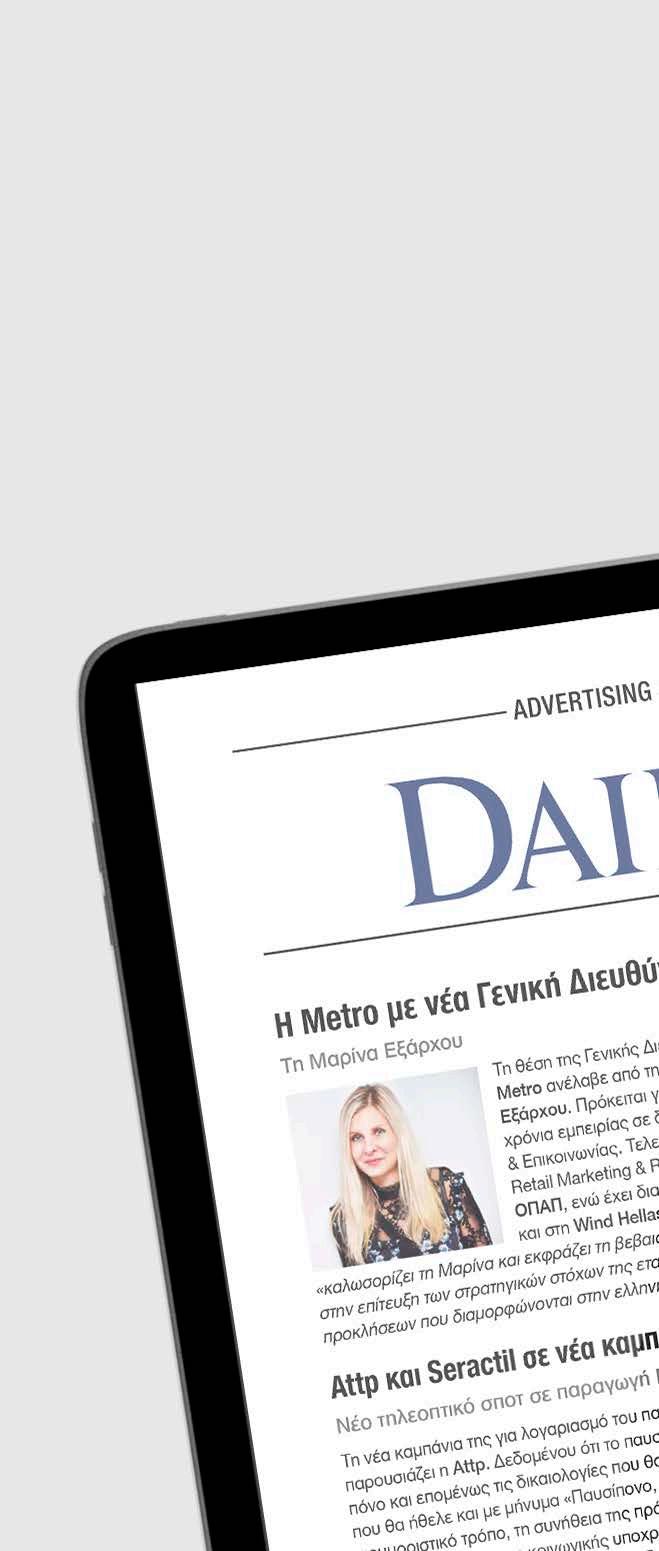 δοκιμαστικά για 1 μήνα Η στρατηγική επιλογή στην ενημέρωση Το ημερήσιο newsletter Dailyfax της BOUSSIAS είναι ένα πολύτιμο στρατηγικό εργαλείο για τους επαγγελματίες της Διαφήμισης, του Marketing, των Media και του ευρύτερου οικοσυστήματος της Επικοινωνίας. Καθημερινά στο Inbox σας,