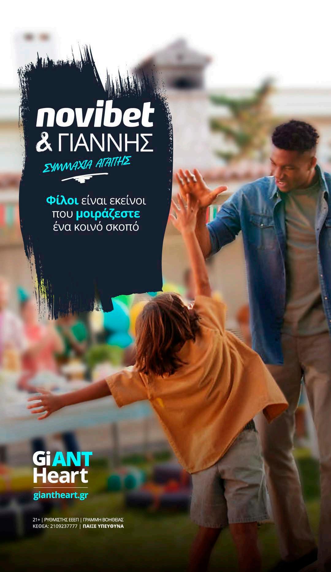 τος, εστίασε στην εκμάθηση της Ειδικής Καλαθοσφαιρικής Αγωγής, σε παιδιά που βρίσκονται στο φάσμα του αυτισμού. Ο αντίκτυπος της πρωτοβουλίας "The GiANT Heart" by Novibet στο κοινωνικό σύνολο είναι αξιοσημείωτος. Η έμπρακτη συνεισφορά στις επωφελούμενες τοπικές κοινότητες αποτελεί την κληρονομιά της εταιρείας, καθώς, με πρεσβευτή τον Γιάννη Αντετοκούνμπο συνεχίζει δυναμικά τις δράσεις προσφοράς. ΛΙΓΑ ΛΟΓΙΑ ΓΙΑ ΤΗ NOVIBET H Novibet δραστηριοποιείται από το 2010 στον τομέα παροχής υπηρεσιών διαδικτυακής ψυχαγωγίας. Με 580+ εργαζόμενους, η Novibet ξεχωρίζει για την τεχνολογική καινοτομία των υπηρεσιών της. Παράλληλα, μέσα από το πρόγραμμα κοινωνικής υπευθυνότητας, "The GiANT Heart", με πρεσβευτή τον Γιάννη Αντετοκούνμπο, η Novibet υλοποιεί δράσεις κοινωνικής προσφοράς, υποστηρίζοντας τοπικές κοινότητες και φορείς. ΔΕΚΕΜΒΡΙΟΣ 2022