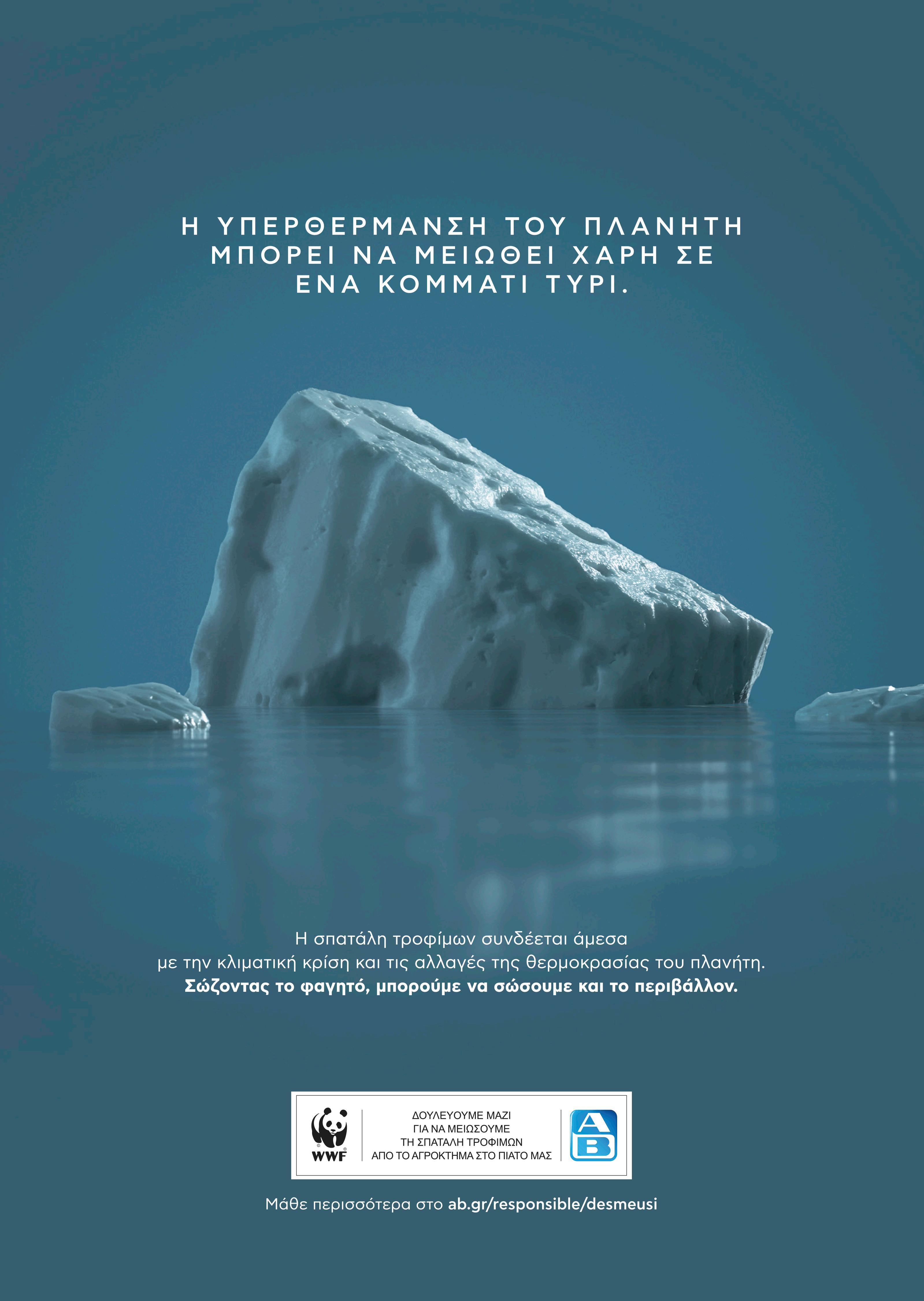 να μας προσφέρει τα πλούσια αγαθά του. «ΣΩΖΟΝΤΑΣ» ΤΟ ΦΑΓΗΤΟ, ΜΠΟΡΟΥΜΕ ΝΑ ΣΩΣΟΥΜΕ ΤΟ ΠΕΡΙΒΑΛΛΟΝ Ακόμα και τα μπρόκολα που καταναλώσατε πριν χαλά σουν ή το smoothie που φτιάξατε από τις υπερώριμες μπανάνες σας, συμβάλλουν στην προστασία του περιβάλλοντος. Δεν θέλει, λοιπόν, κόπο. Σίγουρα, όμως, θέλει τρόπο, και μερικές απλές κινήσεις και πρακτικές αρκούν για να περιορίσουν το περιβαλλοντικό μας αποτύπωμα. Τη δική της θέση στο ζήτημα έχει πάρει η ΑΒ Βασιλόπουλος, η οποία έχει δεσμευτεί να μειώσει το δικό της περιβαλλοντικό αποτύπωμα κατά 50%, μέχρι το 2025. Με συνοδοιπόρο το WWF Ελλάς, έχει ξεκινήσει ένα ταξίδι αντιμετώπισης του σημαντικού αυτού ζητήματος, για τη διασπορά του μηνύματος για τη μείωση της σπατάλης τροφίμων. Με αυτόν τον τρόπο, η αλυσίδα σούπερ μάρκετ κινητοποιεί όλους
