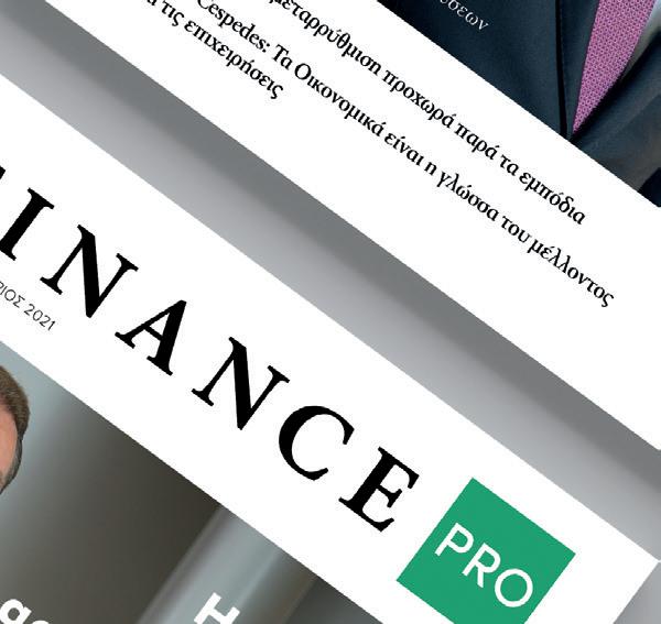Γραμματέας Οικονομικής Πολιτικής: Δρομολογούμε αποφασιστικά βήματα στην κατεύθυνση της βιώσιμης ανάπτυξης Interview Γιούλη Καλογήρου, Finance Director, LeasePlan Hellas: Ο ψηφιακός μετασχηματισμός έχει απελευθερώσει πρωτόγνωρες δυνατότητες για τις επιχειρήσεις Interview Hafiz Roslan, Group CFO της FLS: H χρηματοοικονομική στρατηγική πρέπει να είναι ισχυρή 6 16 44 54 56 20 ΠΕΡΙΕΧOΜΕΝΑ ΕΚΔΟΤΗΣ Μιχάλης Κ. Μπούσιας ΔΙΕΥΘΥΝΤΡΙΑ ΠΕΡΙΟΔΙΚΩΝ ΕΚΔΟΣΕΩΝ Κατερίνα Πολυμερίδου ΔΙΕΥΘΥΝΤΡΙΑ ΠΩΛΗΣΕΩΝ Νένα Γιαννακίδου GROUP ΑDVERTISING DIRECTOR Λήδα Πλατή GROUP RETAIL SALES DIRECTOR /SUBSCRIPTIONS Αμαλία Ψιλούδη CREATIVE DIRECTOR Γιώργος Τριχιάς ΣΤΟΙΧΕΙΑ ΕΠΙΚΟΙΝΩΝΙΑΣ Κλεισθένους 338, 153 44 Γέρακας Τ: 210 6617777, F: 210 6617778, www.boussias.com ΕΤΗΣΙA ΣΥΝΔΡΟΜH: €99 Κωδικός ΕΛΤΑ: 210184 ISSN: 2732-7159 HEAD OF BUSINESS UNIT Βασίλης Καφίρης vkafiris@boussias.com AΡΧΙΣΥΝΤΑΚΤΗΣ Γιώργος Δημοσθένους gdimosthenous@boussias.com ΣΥΝΤΑΚΤΗΣ Κατερίνα Τσιτούρα ΕΞΩΤΕΡΙΚΟΣ ΣΥΝΤΑΚΤΗΣ Βάιος Κρόκος ΥΠΕΥΘΥΝΟΣ ΔΙΑΦΗΜΙΣΗΣ Κωνσταντίνος Ραμπίδης krambidis@boussias.com ΓΡΑΦΙΣΤΙΚΗ ΕΠΙΜΕΛΕΙΑ Αλέξανδρος Καρβουτζής ΦΩΤΟΓΡΑΦΟΣ Κορνήλιος Σαραντίογλου IMAGE BANK www.stock.adobe.com ΤΜΗΜΑ ΣΥΝΔΡΟΜΩΝ Βίκη Θεοδωρίδου, E: vtheodoridou@boussias.com ΥΠΕYΘΥΝΗ ΚΥΚΛΟΦΟΡIΑΣ Ρίτα Κανδάκη ΓΡΑΜΜΑΤΕΙΑ Δήμητρα Σπανού ΕΚΤΥΠΩΣΗ-ΒΙΒΛΙΟΔΕΣΙΑ Pressious Arvanitidis ΣΥΣΚΕΥΑΣΙΑ/ΕΝΘΕΣΗ/ ΕΠΙΚΟΛΛΗΣΗ Presstime ΛΟΓΙΣΤHΡΙΟ Κωσταντίνος Χασιώτης, Αλέξης Σουλιώτης, Λίνα Γκολομάζου