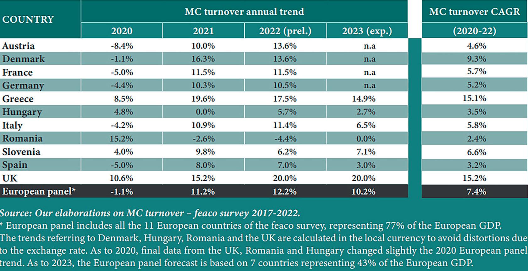 Μετά τη μείωση του ευρωπαϊκού κύκλου εργασιών που σημειώθηκε το 2020, λόγω της πανδημίας Covid19 και τη σημαντική ανάκαμψη το 2021, για το 2022 εκτιμάται ότι η αύξηση θα φτάσει το 12,2%. Η Μ. Βρετανία και η Ελλάδα, καθώς και η Αυστρία