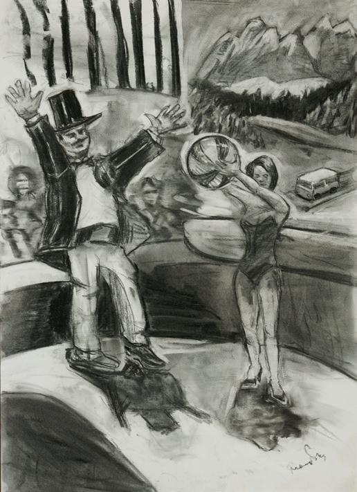 Η διασκέδαση αποτελεί ακόμη ένα σημείο ενδιαφέροντος του εικαστικού, ο οποίος προσπαθεί να αποδώσει το τσίρκο με τρόπο μελαγχολικό, συνομιλώντας με τον ίδιο στοχασμό της ροζ περιόδου του Πικάσο. «Ο άνθρωπος είναι ο ίσκιος του ονείρου», έγραψε ο Πίνδαρος στον όγδοο Πυθιόνικο. Βασιζόμενος στην