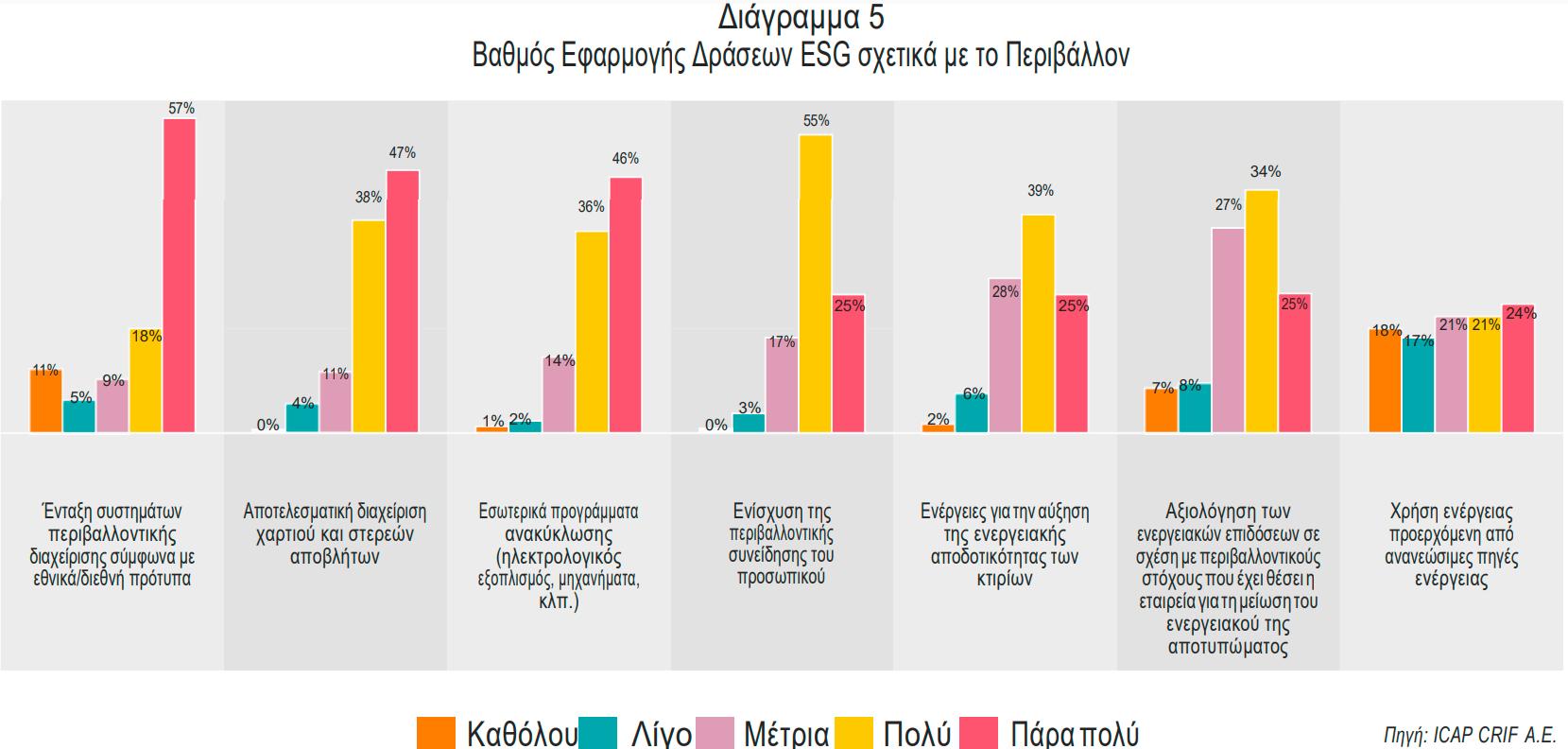 Αξίζει να σηµειωθεί ότι όλες οι περιβαλλοντικές δράσεις ενίσχυσαν τα ποσοστά τους συγκριτικά µε τα αντίστοιχα που έλαβαν στην προηγούµενη έρευνα, γεγονός που καταδεικνύει την ολοένα αυξανόµενη σηµασία που δίνουν οι εταιρείες στο περιβαλλοντικό τους αποτύπωµα.