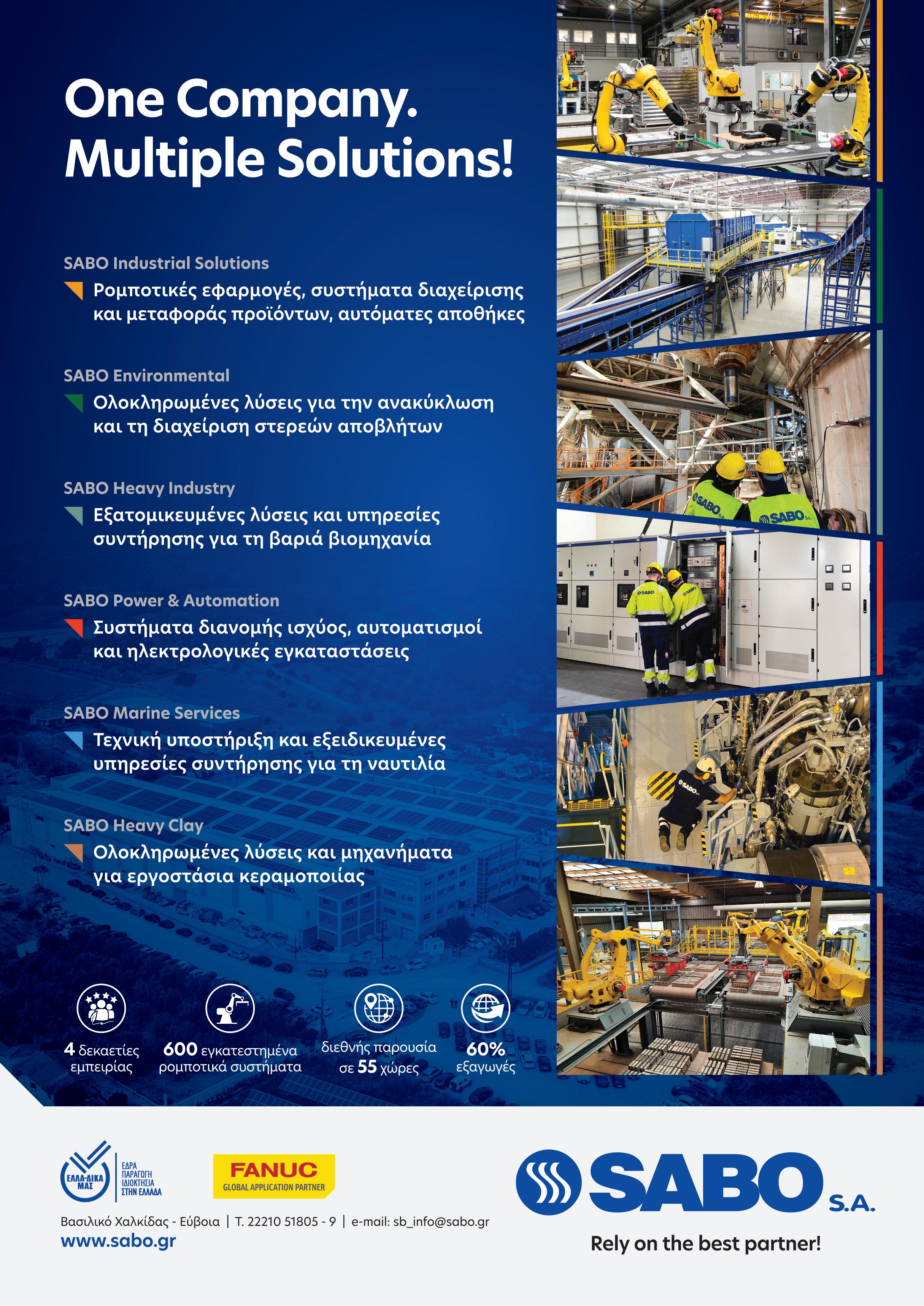 Η SABO SA αναπτύσσει εξατομικευμένες λύσεις ρομποτικής και αυτοματισμού με εφαρμογή σε όλο το φάσμα της βιομηχανίας.