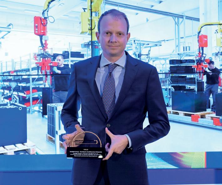BRONZE VIOPOL Polyurethane Systems | Viopol SA: Creating PURe Value Στρατηγικ ή για τα ESG GOLD MYTILINEOS S.A. | MYTILINEOS ESG Επιδόσεις SILVER ΣΥΜΕΤΑΛ Α.Ε. | Υπεύθυνη παραγωγή αλουμινίου σύμφωνα με το πρότυπο βιωσιμότητας “ASI Performance Standard” της Aluminium Stewardship Initiative BRONZE UNI-PHARMA S.A./INTERMED S.A. | Διαχείριση περιβάλλοντος και Βιώσιμη Ανάπτυξη στον Ομιλο Φαρμακευτικών Επιχειρήσεων Τσέτη Διοίκηση Εργοστασίου Παραγωγικ ό τητα & Aπ ό δοση GOLD KLEEMANN | Εργοστάσιο Θαλάμων: Eφαρμογή συνεχούς βελτίωσης συναρμολόγησης θαλάμων SILVER GRANDEX - ENTERSOFT | Η αναβάθμιση της Παραγωγικής διαδικασίας και της σύνθετης Δρομολόγησης παραγγελιών της GRANTEX μέσα από την υλοποίηση των λύσεων Entersoft Business Suite, Entersoft WMS και Κυκλώματος Παραγωγής BRONZE MAPEI HELLAS | Σημαντική αύξηση της παραγωγικότητας 51,66% για τη Mapei Hellas Αποτελεσματικ ή διο ί κηση, παραγωγ ή & logistics GOLD ΠΑΠΑΣΤΡΑΤΟΣ | Σύστημα OPEN+ και Manufacturing of the Future, η ερμηνεία της ΠΑΠΑΣΤΡΑΤΟΣ για το εργοστάσιο του μέλλοντος | Αποτελεσματικ ή διο ί κηση & συστ ή ματα παραγωγ ή ς SILVER Corinth Pipeworks S.A. | Πρόγραμμα Επιχειρησιακής Αριστείας “Operational Excellence BEST IWS” | Αποτελεσματικ ή διο ί κηση & συστ ή ματα παραγωγ ή ς BRONZE ΣΟΥΡΩΤΗ - ENTERSOFT | H καινοτόμα προσέγγιση της ΣΟΥΡΩΤΗ στην εξυπηρέτηση του τελικού πελάτη, μέσα από τις λύσεις Entersoft ERP / Mobile SFA / e-Distributors Channel Monitoring / MRP & κύκλωμα Παραγωγής | Αποτελεσματικ ά logistics Καινοτομία & Νέες Τεχνολογίες Αξιοπο ί ηση τεχνολογιών στην παραγωγ ή GOLD ΠΛΑΣΤΙΚΑ ΘΡΑΚΗΣ PACK | Νέες Τεχνολογίες και Συστήματα με στόχο την Αυτοματοποίηση της Παραγωγικής Διαδικασίας και την ταυτόχρονη βελτίωση της απόδοσης και της Παραγωγικότητας SILVER Sunlight Group - Συστήματα Αποθήκευσης Ενέργειας | Τεχνολογία, Έρευνα & Ανάπτυξη, και καινοτομία στην υπηρεσία της παραγωγής BRONZE HELLAS GOLD - COSMOTE | HELLAS GOLD - Industrial Innovation with Campus Private 4G Smart Factory GOLD ΜΥΤΙΛΗΝΑΙΟΣ Α.Ε. | ΑτΕ | ΤΟΜΕΑΣ ΜΕΤΑΛΛΟΥΡΓΙΑΣ | Preventive maintenance solution for manufacturing industry SILVER Corinth Pipeworks S.A. | Εφαρμογή τεχνολογίας Digital Twin στον Κλάδο Κατασκευής Χαλύβδινων Σωλήνων Έρευνα & αν ά πτυξη (R&D) GOLD DEMO ΑΒΕΕ | Κέντρο Έρευνας και Ανάπτυξης DEMO SILVER Sunlight Group - Συστήματα Αποθήκευσης Ενέργειας | Έρευνα & Ανάπτυξη στην καρδιά της δραστηριότητας της Sunlight Group BRONZE GIZELIS ROBOTICS - Ελληνική εταιρία συστημάτων αυτοματισμού και ρομποτικών εφαρμογών. | Fidias ( Φειδίας) – Το ρομπότ υπερυψηλής τεχνολογίας της Gizelis Robotics που άλλαξε τα δεδομένα της κατεργασίας Καινοτ ό μα προϊ ό ντα GOLD KLEEMANN | G-Braille, σύστημα υποβοήθησης ατόμων με προβλήματα όρασης για ανελκυστήρα. SILVER Sunlight Group - Συστήματα Αποθήκευσης Ενέργειας | Αποστολή της Sunlight η μετατροπή της γνώσης σε καινοτόμα προϊόντα που απαντούν σε υπάρχουσες και μελλοντικές ανάγκες της αγοράς BRONZE EUROPA PROFIL ΑΛΟΥΜΙΝΙΟ Α.Β.Ε. | EOS 90 PH SI Hybrid: Το πρώτο σύστημα διεθνώς στο Παθητικό Σπίτι στην κατηγορία του BRONZE Αγροτικός Πτηνοτροφικός Συνεταιρισμός Ιωαννίνων ΠΙΝΔΟΣ | Έτοιμα Ψημένα προϊόντα κοτόπουλου 63 • NOEMΒΡΙΟΣ 2022