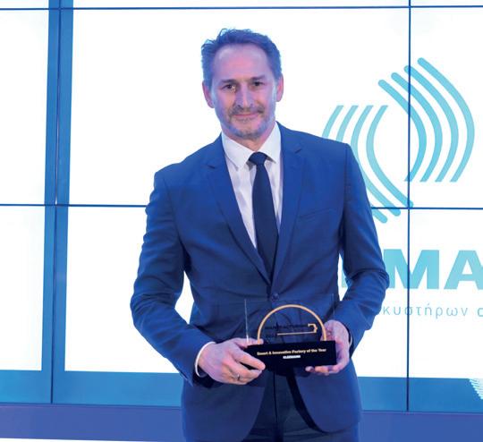 Πίνακας Νικητών Αριστεία ανά Βιομηχανικό Κλάδο Τρ ό φιμα & ποτ ά WINNER ΒΙΚΟΣ Α.Ε. Φ ά ρμακα & καλλυντικ ά WINNER UNI-PHARMA S.A./INTERMED S.A. | Διαχείριση περιβάλλοντος και Βιώσιμη Ανάπτυξη στον Ομιλο Φαρμακευτικών Επιχειρήσεων Τσέτη Γυαλ ί , μέ ταλλο, χαρτ ί WINNER ΕΛΒΑΛΧΑΛΚΟΡ Α.Ε Δομικ ά προϊ ό ντα WINNER MAPEI HELLAS Ηλεκτρομηχανολογικ ό ς εξοπλισμ ό ς WINNER Vraykos Bulk Handling Systems Ανακ ύ κλωση και προστασ ί α του περιβ ά λλοντος WINNER ΚΑΘΕΡΗΣ ΑΒΕΕ Καπνοβιομηχανία WINNER ΠΑΠΑΣΤΡΑΤΟΣ Επενδύσεις & Στρατηγική Σημαντικ ή παραγωγικ ή επέ νδυση GOLD ΕΛΒΑΛΧΑΛΚΟΡ Α.Ε | ElvalHalcor: Συνεχείς επενδύσεις για ένα βιώσιμο αύριο SILVER Sunlight Group - Συστήματα Αποθήκευσης Ενέργειας | Tο μεγαλύτερο καθετοποιημένο εργοστάσιο παραγωγής μπαταριών έλξης παγκοσμίως στο Νέο Όλβιο της Ξάνθης BRONZE ΠΑΠΑΣΤΡΑΤΟΣ | Συνολική επένδυση ύψους 170 εκατομμυρίων ευρώ για την επέκταση του εργοστασίου αποκλειστικής παραγωγής θερμαινόμενων ράβδων καπνού για το IQOS. Εξωστρεφ ή ς μεταποιητικ ή δραστηρι ό τητα GOLD Sunlight Group - Συστήματα Αποθήκευσης Ενέργειας | Sunlight Group: η ελληνική πολυεθνική με την παγκόσμια δυναμική, σε τροχιά ανάπτυξης και επέκτασης Αναδιοργ ά νωση παραγωγ ή ς GOLD EUROPA PROFIL ΑΛΟΥΜΙΝΙΟ Α.Β.Ε. | Αναδιοργάνωση Τμήματος Κατεργασιών (Προφίλ Θερμοδιακοπής) SILVER KLEEMANN | Εργοστάσιο Πλαισίου Ανάρτησης: Aναδιοργάνωση τμήματος συγκολλήσεων Smart & Innovative Factory of the Year KLEEMANN Sustainable Factory of the Year ΠΑΠΑΣΤΡΑΤΟΣ Industry Provider of the Year ΕΝΤΕΡΣΟΦΤ SME Smart Technology of the Year GIZELIS ROBOTICS 62 NOEMΒΡΙΟΣ 2022 •