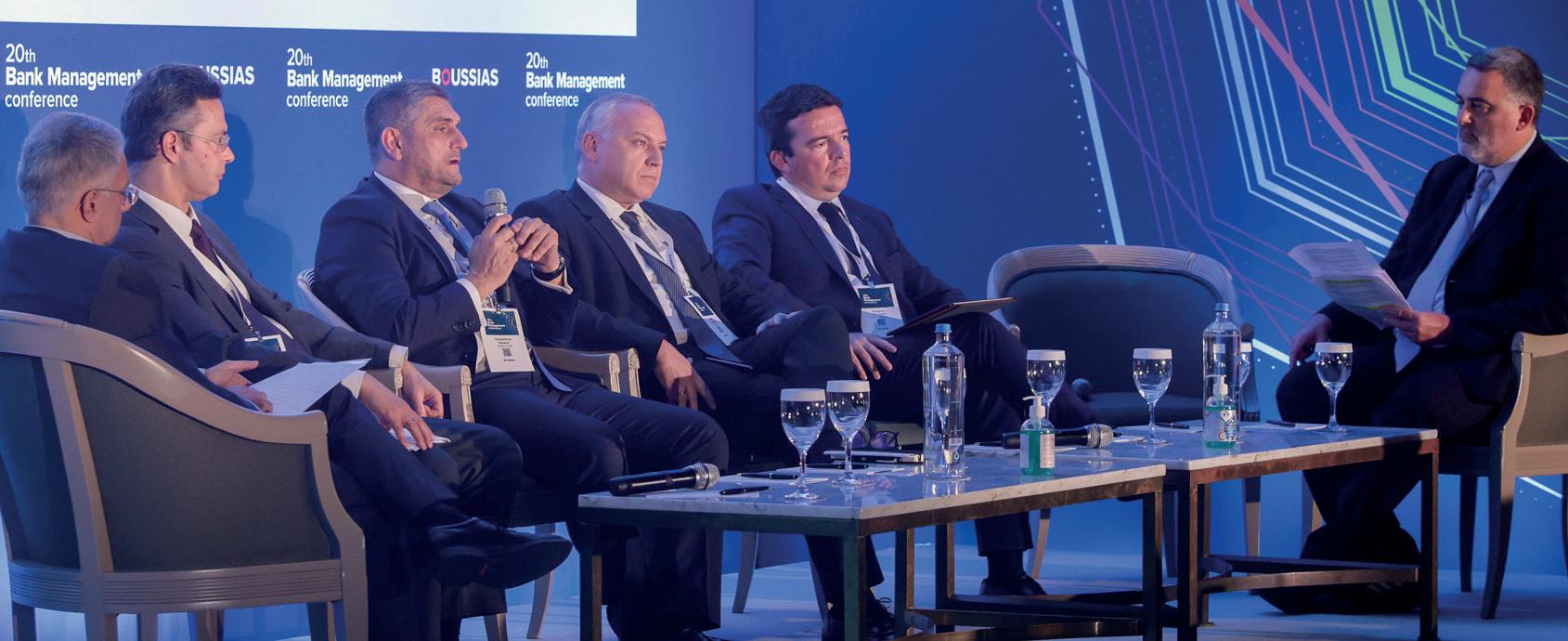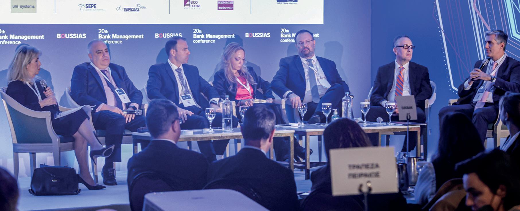 ε µεγάλη επιτυχία και εντυπωσιακή ανταπόκριση ολοκληρώθηκε το 20o Bank Management Conference µε θέµα “ Re-imagining the Value Chain for a truly Customer-Centric Bank” την Τετάρτη, 23 Νοεµβρίου, στο Divani Caravel Hotel. Με την υποστήριξη των χορηγών Cosmote, Nexi Group , Hewlett Packard Enterprise-Infinitum, PCS, SAS-Performance Technologies και VISA, και για 20η συνεχή χρονιά, εξερεύνησε τον οδικό χάρτη προς τη βιώσιµη ανάπτυξη του τραπεζικού τοµέα και την αξία του Customer-centricity µέσα από καινοτόµες παρεµβάσεις, την αποτελεσµατική χρήση των ψηφιακών καναλιών και «έξυπνων» υπηρεσιών µε στόχο να διασφαλιστούν τα οφέλη προς τους πελάτες αναβαθµίζοντας τις σχέσεις των Τραπεζών µε την Αγορά, µέσα από διαφωτιστικές παρουσιάσεις δεκάδων θεσµικών οµιλητών, διεθνών thought leaders και κορυφαίων στελεχών τραπεζών που αντάλλαξαν απόψεις σε τέσσερα πάνελ συζήτησης. Ο συντονιστής του συνεδρίου, δηµοσιογράφος Παναγιώτης Μαρκέτος, άνοιξε την πρώτη ενότητα, που εστίασε στα πιο κρίσιµα