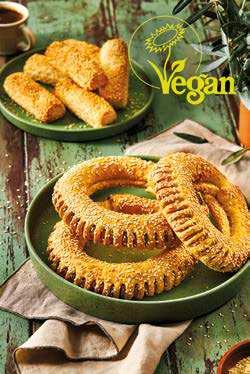σουσαμένιο Κουλούρι Θεσσαλονίκης και σε εκδοχή ολικής άλεσης, καθώς και τα στριφτάρια με πατάτα, η παραδοσιακή