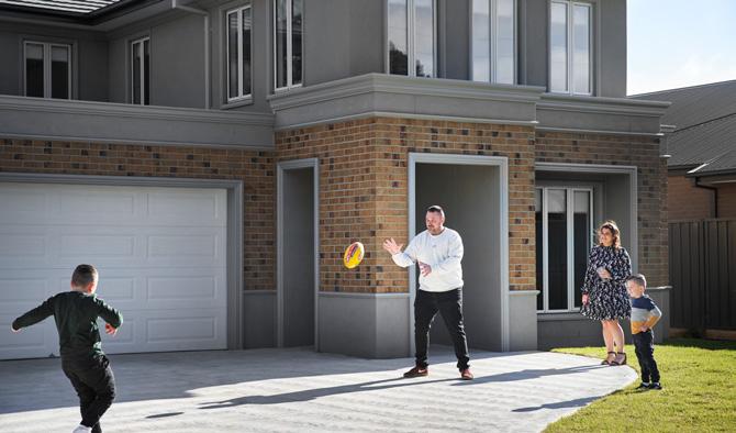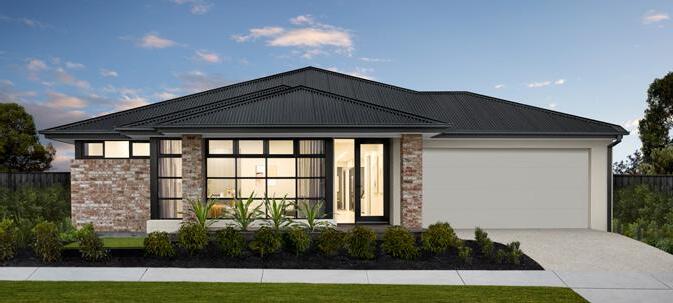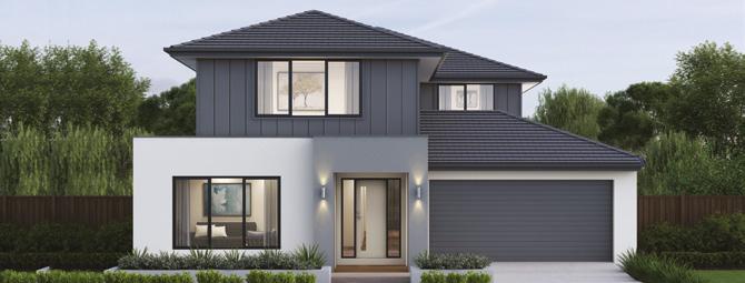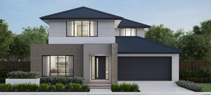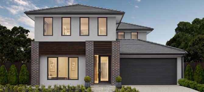• Brick or rendered lightweight cladding above garage door (home design specific)