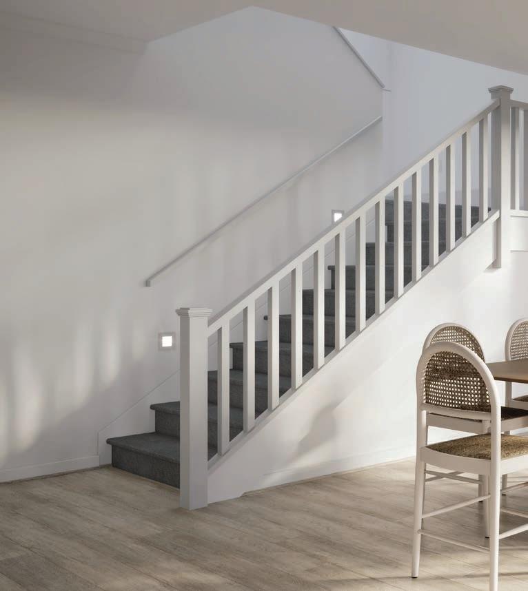 • Enclosed staircase with carpeted tread and rises, painted handrail and stringers and dwarf wall to first floor (home design specific)