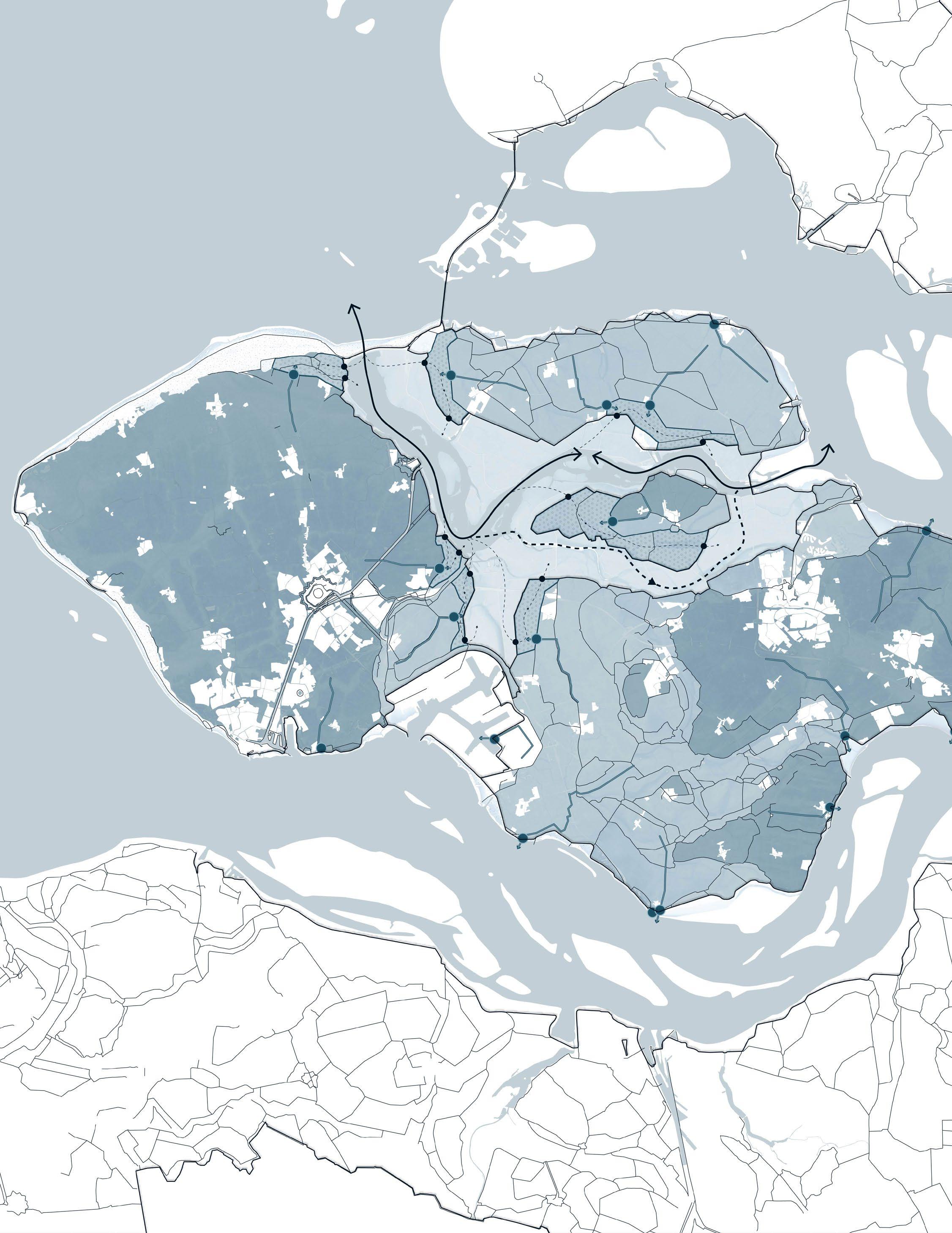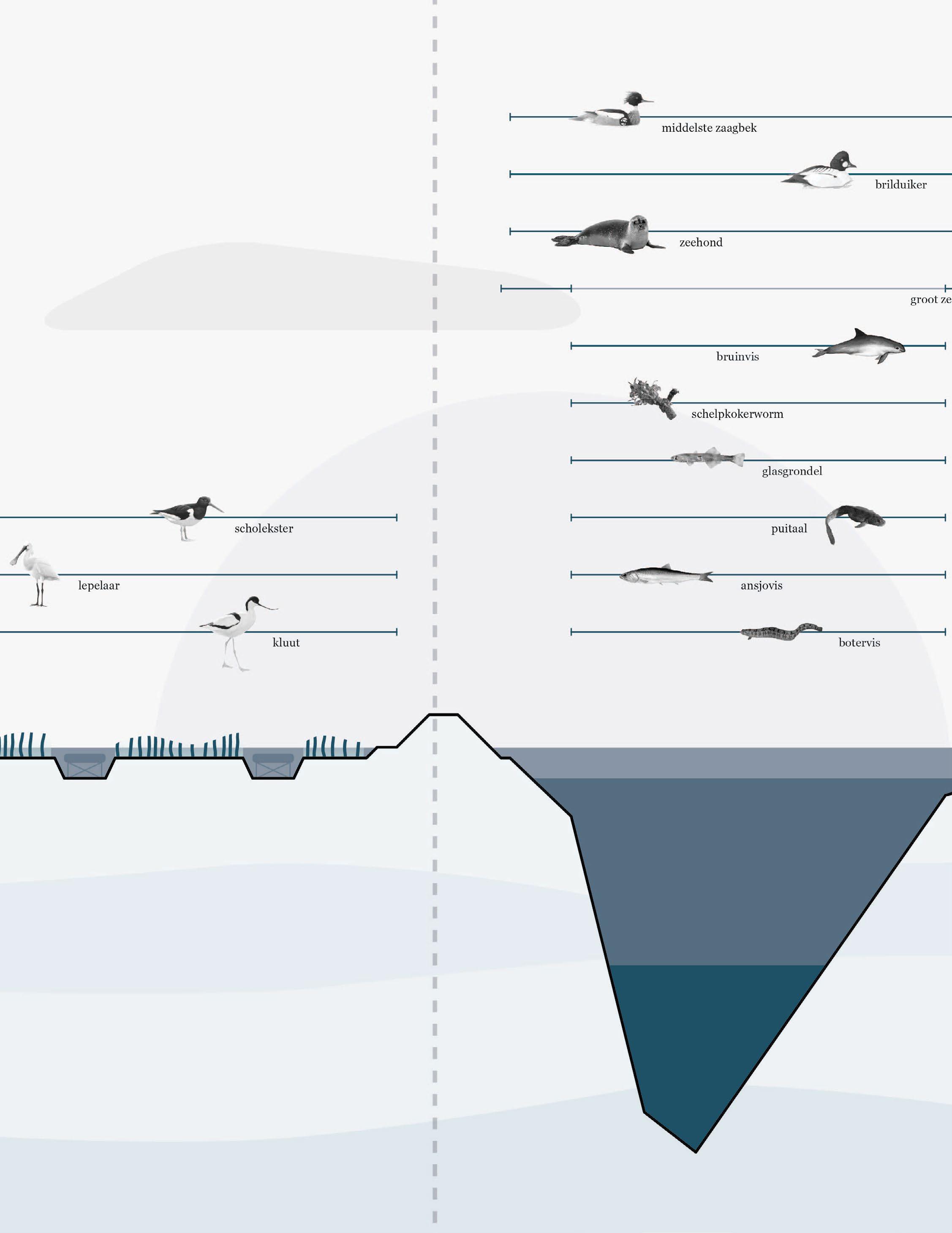 De diversiteit van het landschap is te ervaren door de verschillende routes die door het landschap lopen. Bestaande en nieuwe dijken vormen de basis van deze routes, waardoor je je op de rand van twee verschillende landschappen bevindt. De werking van het landschap is beleefbaar door belangrijke punten te markeren. Rondom de zuiveringspolder zijn inlaatpunten te vinden waar het water ieder getij in- of uit stroomt. Bij Kamperland zijn proeftuinen te vinden waar nieuwe producten getest worden, maar waar ook bezoekers de zilte producten kunnen proeven. De nieuwe fora en fauna is op verschillende punten zowel boven als onder water te bekijken. Door de ingrepen om de waterkwaliteit te verbeteren kan het gebied een diversiteit aan nieuwe bezoekers trekken die komen voor verschillende doelen.