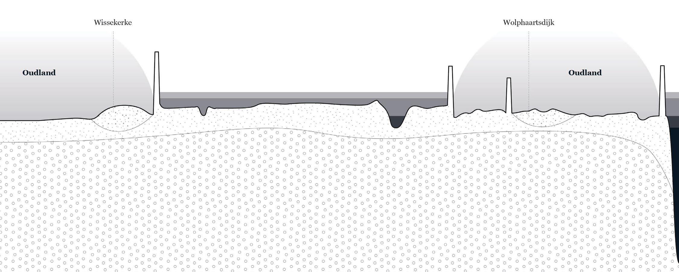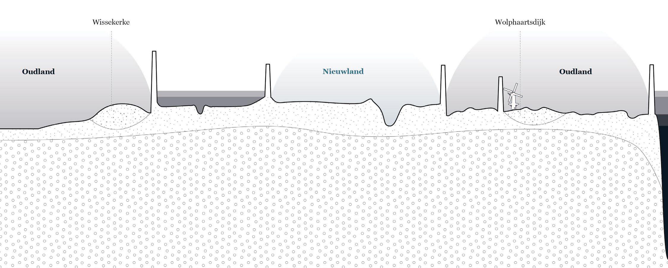 In de gehele polder wordt enkel lichte klei aangetroffen. Deze klei is door de getijden afgezet tegen de oude dijk.