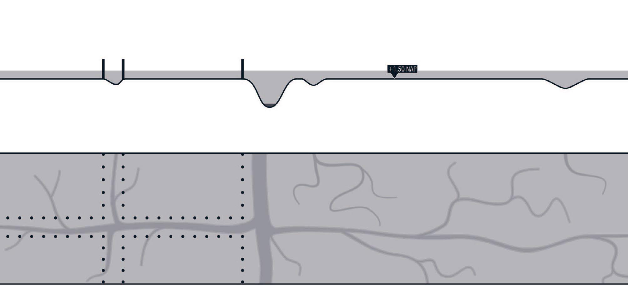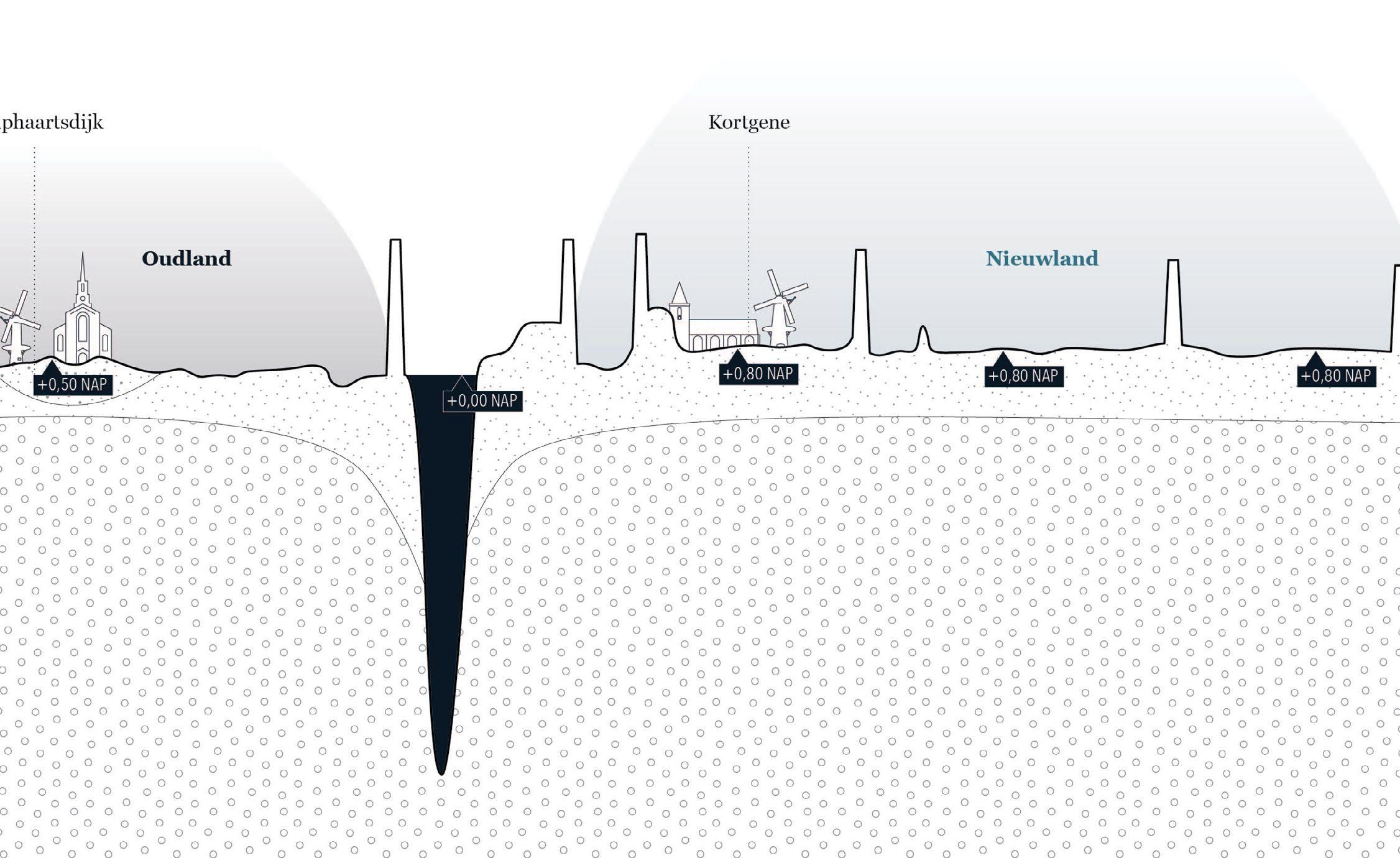 De polder kent grote hoogteverschillen door een oude geul die tegen het oudland aan ligt. Deze geul is op de diepste delen -0,50m NAP, terwijl de hoogste delen op +1,40m NAP liggen.