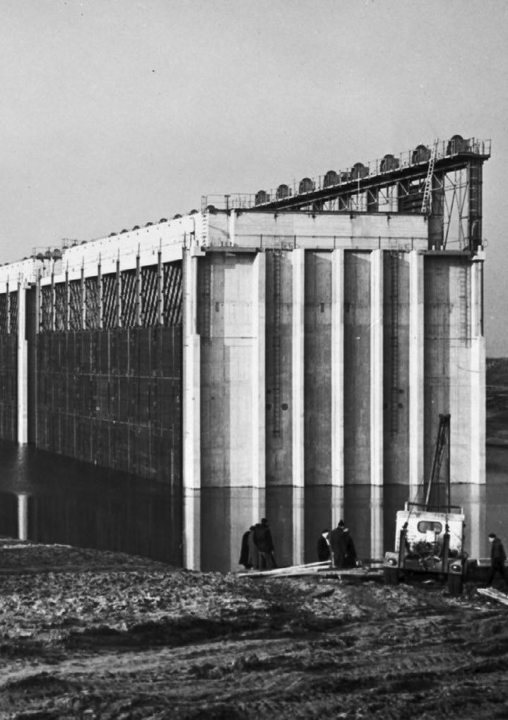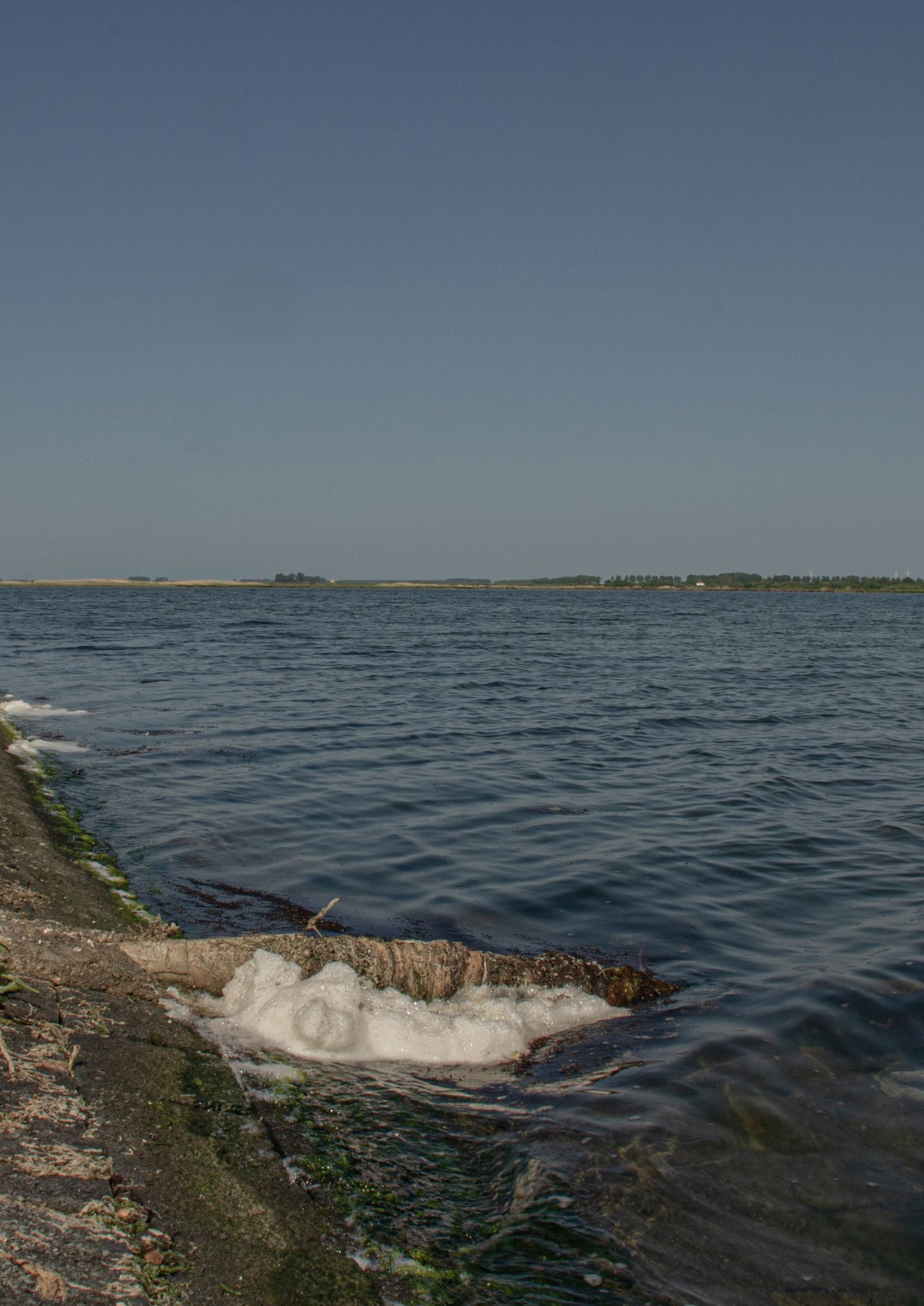 dicht over het inkomende water water binnengelaten, bij eb stroomt het water via de andere kant uit de zuiveringspolder