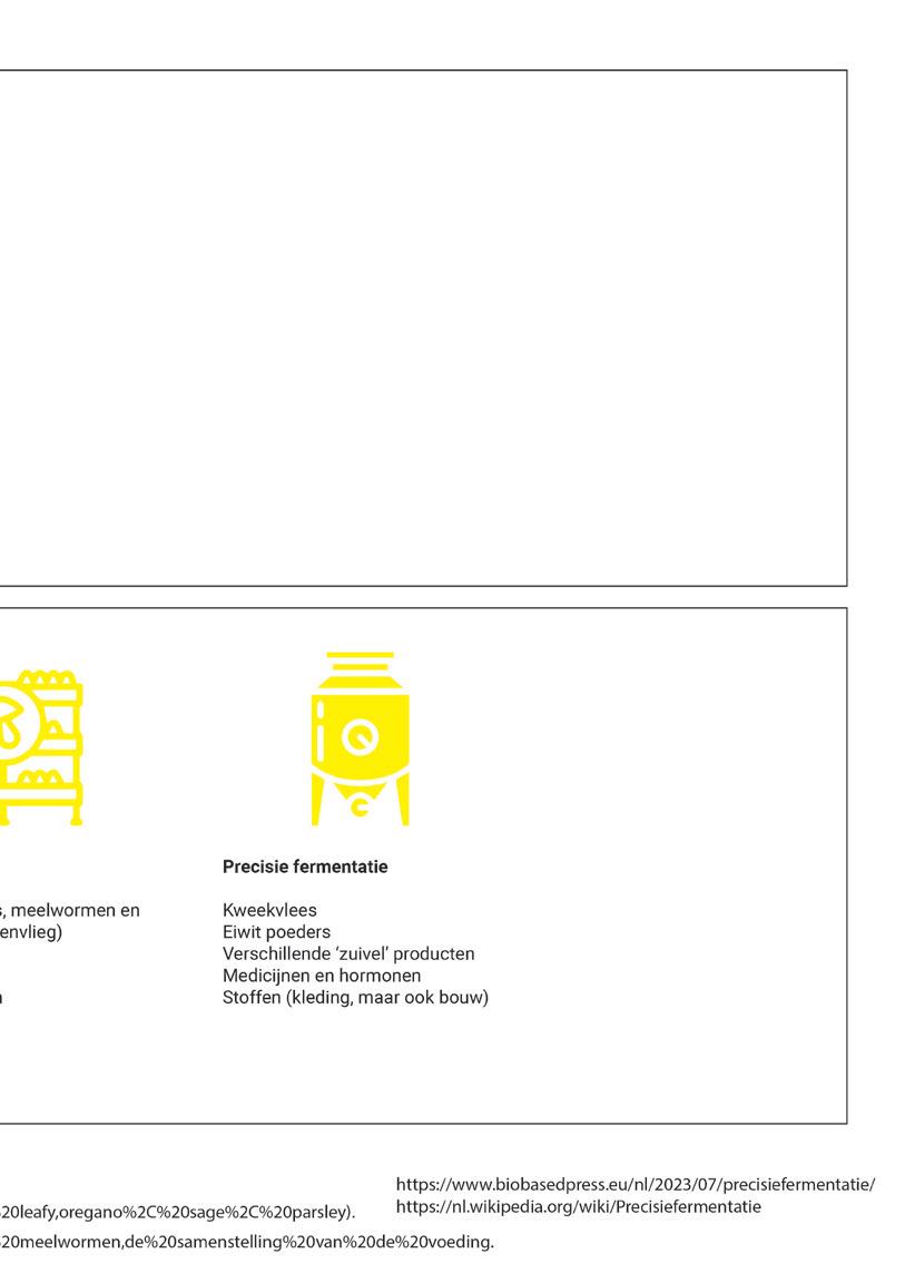 AirGarden. (z.d.). Aeroponic plants list. Geraadpleegd van https://airgarden.com.au/pages/aeroponic-plants-list BiobasedPress. (2023, juli). Precisiefermentatie. Geraadpleegd van https://www.biobasedpress.eu/nl/2023/07/ precisiefermentatie/