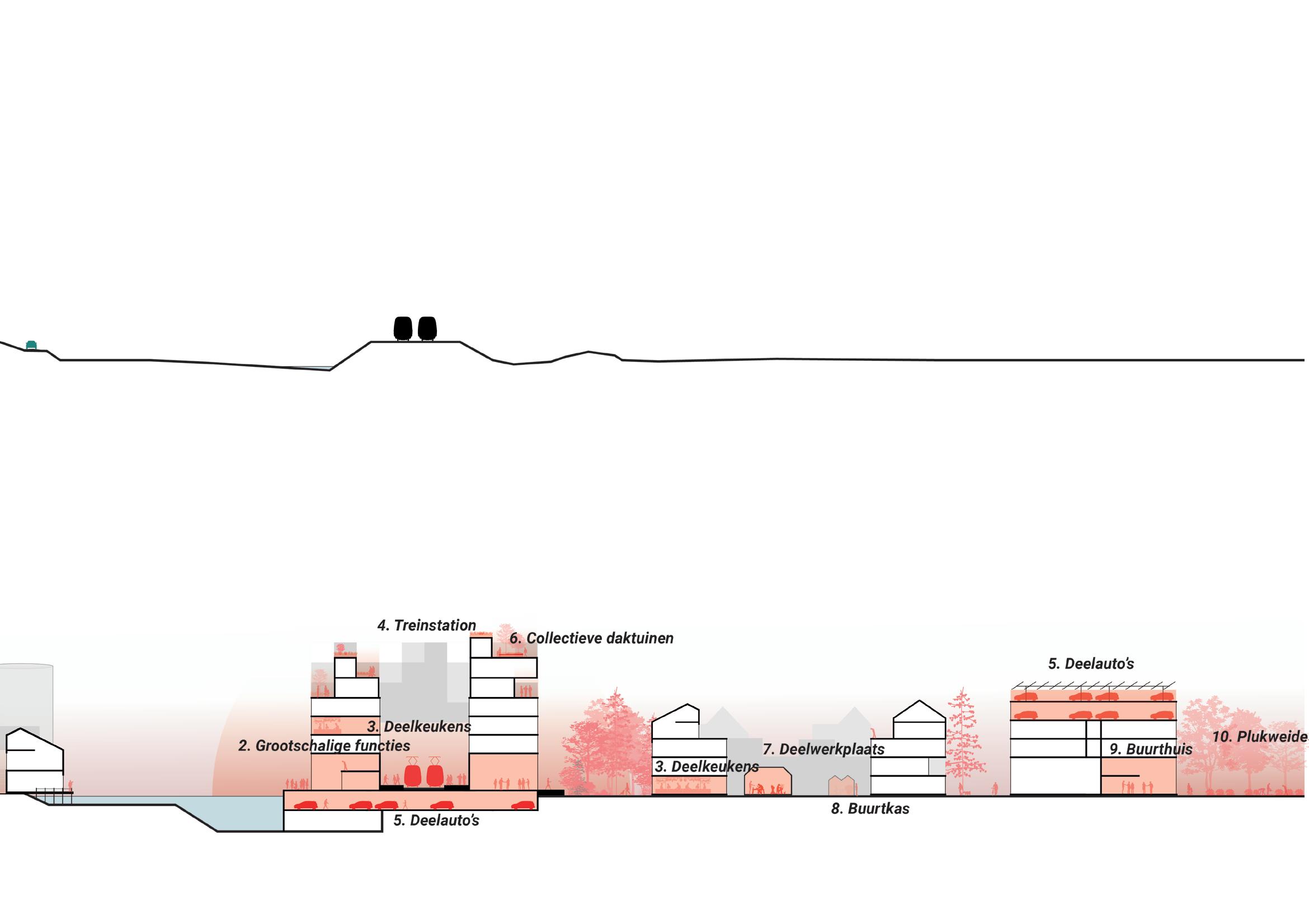 - Stapelen van verschillende woningen om een duurzame dichtheid te maken