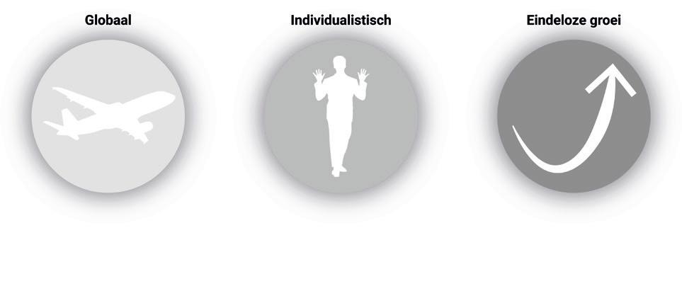 Sinds het einde van de Tweede Wereldoorlog bevindt de westerse wereld zich in het neoliberale tijdperk. Dit wereldbeeld kenmerkt zich door principes zoals een kleine overheid, het individu centraal, globalisme en een — noodzakelijkerwijs — eindeloos groeiende economie. In stedenbouw en bovenal dan de eerder genoemde woonwijken zien we deze principes duidelijk terugkomen: een focus op geld; materialen die van over de hele wereld worden aangevoerd; en alles ingericht op het individueel belang, met voor iedereen een eigen huisje, boompje, beestje en idealitier ook nog een duur stuk blik voor de deur.