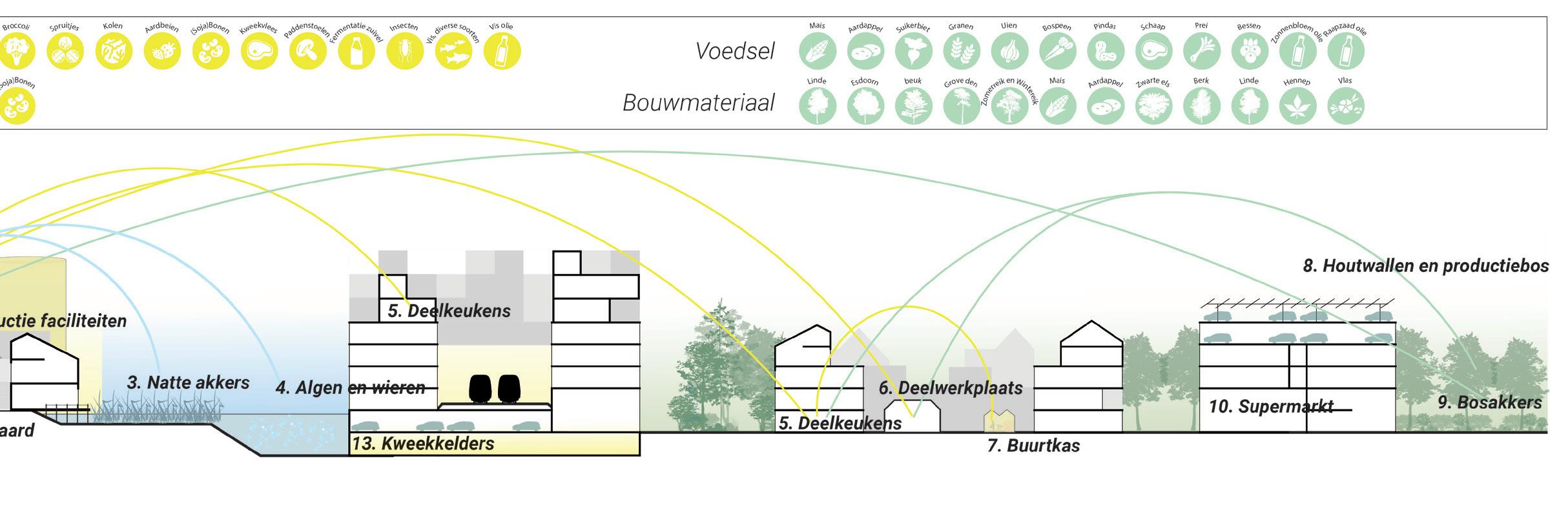 Hoe gaan we, in plaats van de typisch Nederlandse woonwijken als stadsuitbreiding, werken aan duurzamere oplossingen voor ons woningtekort, onze problemen in de landbouw en klimaatproblemen in de komende 35 jaar?