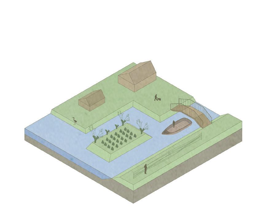 Utrecht, de stad waar ik opgroeide en momenteel woon, is een plek waar verschillende landschapstypen samenkomen: het stadslandschap, rivierkleilandschap, zandlandschap en laagveenlandschap. Met een sterke groei van de stad is er een toenemende behoefte aan recreatieve verblijfsplekken voor nieuwe inwoners. Om de druk op bestaande natuurgebieden te beperken legt de gemeente Utrecht nieuwe natuur en recreatiegebieden aan in een groene ring rondom de stad. Kijkend door de bril van decultivering is er een alternatief ruimtelijk model ontwikkeld voor de stadsrand van Utrecht. De ontginningsassen, zoals de weteringen, kanalen en dijken die ooit werden gebruikt om het land te cultiveren, worden nu benut om de rijke biodiversiteit van de stad uit te breiden naar de omliggende landelijke gebieden. Per landschapstype wordt één natuurlijk proces hersteld: sedimentatie, successie van vegetatie, kwel of verlanding. Bedreigingen zoals een tekort aan oppervlaktewater, erosie, inheemse boomziektes, bodemdaling en verzuring worden aangepakt door het inzetten van natuurlijke bouwstenen. Naast nieuwe recreatieve verbindingen kan de mens zelf actief deelnemen. De boer, degene met de meeste kennis van het land, vervult de rol van landschapsbeheerder, waar stadsbewoners die geïnteresseerd zijn in natuurbehoud kunnen meewerken aan het onderhoud van het landschap en tegelijkertijd gelijkgestemden kunnen ontmoeten. Naast de processen van successie, worden bomen aangeplant, rijshout (wilgentakken) en lisdodde (isolatiemateriaal) geoogst, maaiwerkzaamheden verricht en uitkijktorens gebouwd. Het plan draagt niet alleen bij aan het bevorderen van de relatie tussen mens en natuur, maar versterkt ook de verbinding tussen stedelingen onderling, boeren en de culturele identiteit.