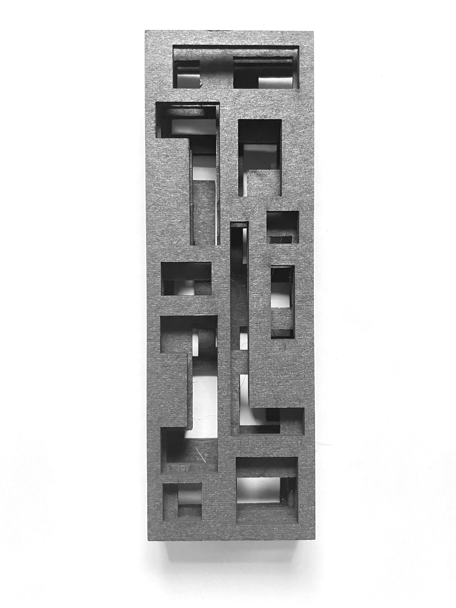 De bestaande betonstructuur vormt de basis voor de nieuwe houten structuur in maat en verhouding. Zo is vanuit het droste-effect, de nieuwe structuur een verkleining van het bestaande.