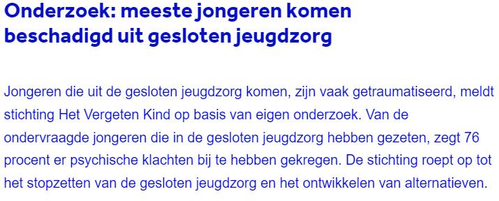 Februari 2022 hebben ruim 133.000 mensen de petitie ondertekend om de gesloten jeugdzorg te stoppen. Sindsdien is er tot de dag van vandaag veel aandacht voor het onderwerp om te streven naar een beter klimaat in de jeugdzorg instellingen.