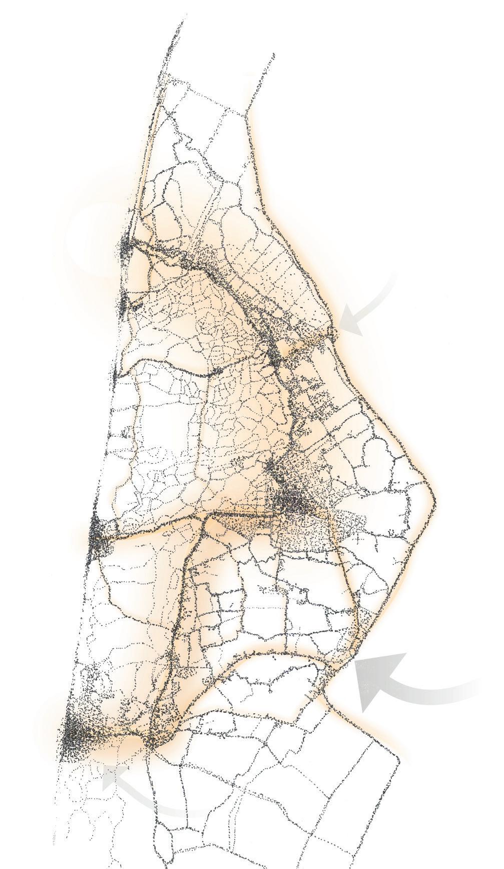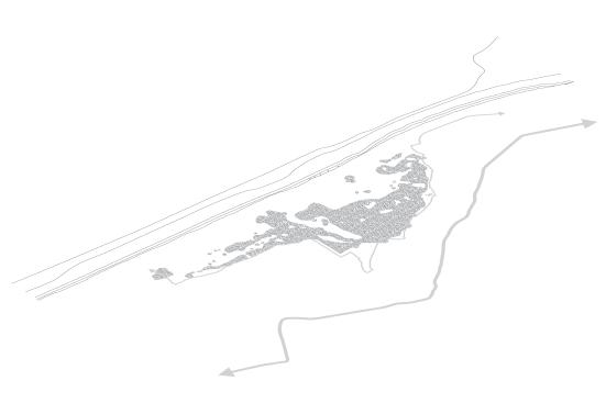 Op de door duinzand overstoven oeverwallen van het Oer-IJ loopt een verharde stroomrug naar een nederzetting uit de Enentwintigste Eeuw Ellie de Waard 2009