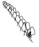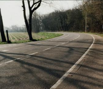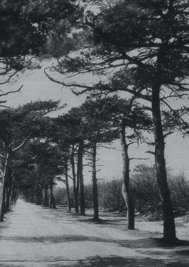 De dennenbomen komen hier op je af op de Eeuwige laan, ze zijn allemaal scheef gegroeid.