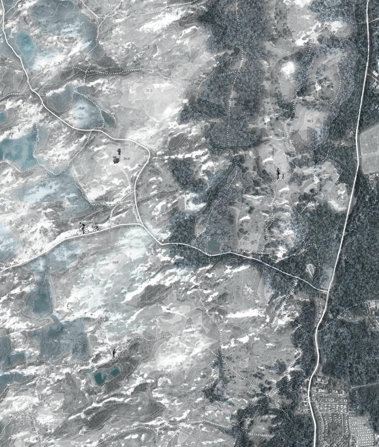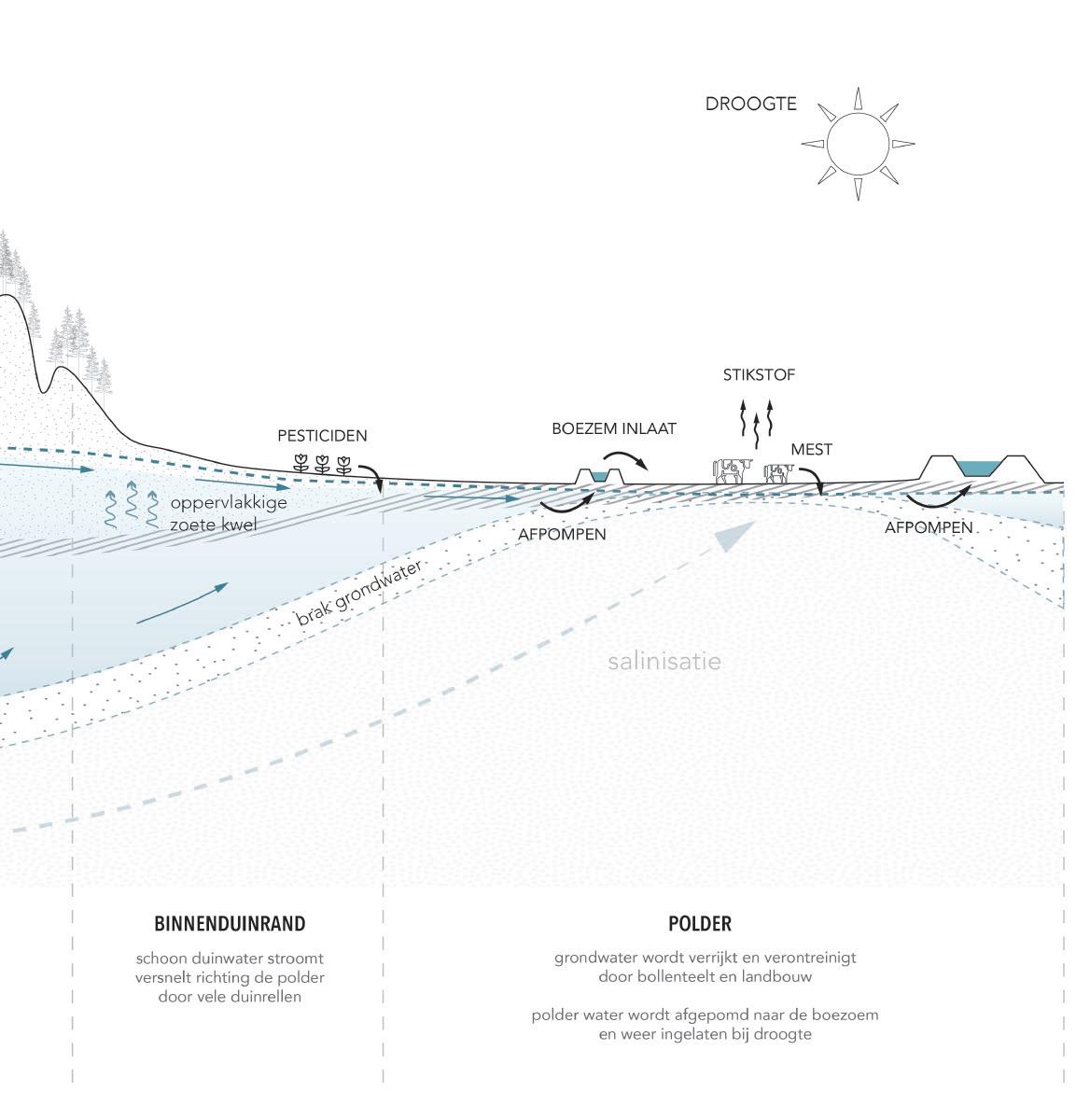 Dit project onderzoekt de diepe verbinding tussen het duin- en polderlandschap rondom Schoorl en belicht hun onderlinge afhankelijkheid via het wateren bodemsysteem. Het gaat om meer dan alleen een technische analyse; het is ook een poëtische verkenning van de interactie tussen de torenhoge duinen en de vlakke polders. Historisch gezien nodigden landeigenaren kunstenaars uit naar het gebied om de verbluffende contrasten en natuurlijke schoonheid vast te leggen, waarbij het landschap in zijn ongerepte vorm werd vastgelegd.