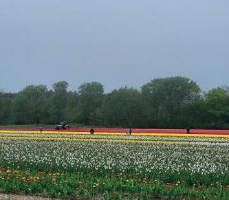 Soms opent het duin zich en liggen er bollenvelden tegen het duin aan. Een echte trekpleister.