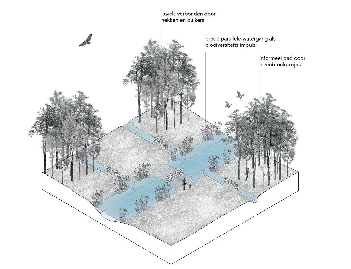 Bospercelen worden op minimaal 10 meter afstand van de waterkant aangelegd om schaduw op de watergangen te minimaliseren en te voorkomen dat er te veel bladval in het water terechtkomt. Dit helpt te voorkomen dat de watergangen te rijk worden aan voedingsstoffen, waardoor de ecologische balans behouden blijft.
