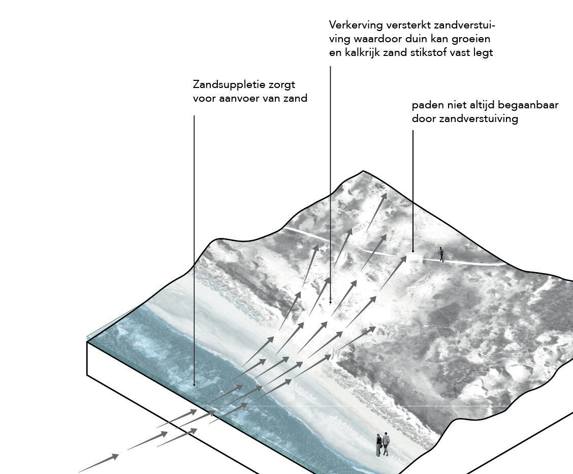 Zand suppletie zorgt voor de aanvoer van zand wat het duin in kan stuiven via de verkerving