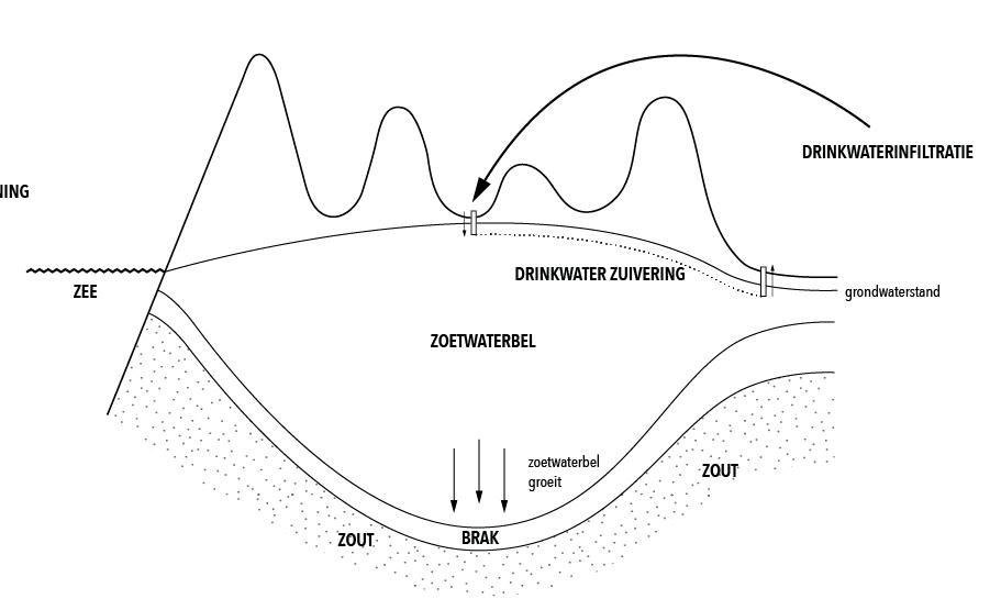 Blauwe ader gevoed met kwelwater en oppervlakte water als buffer in de binnenduinrand
