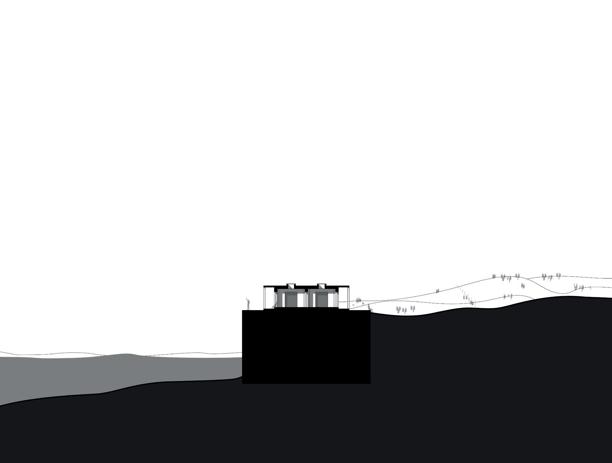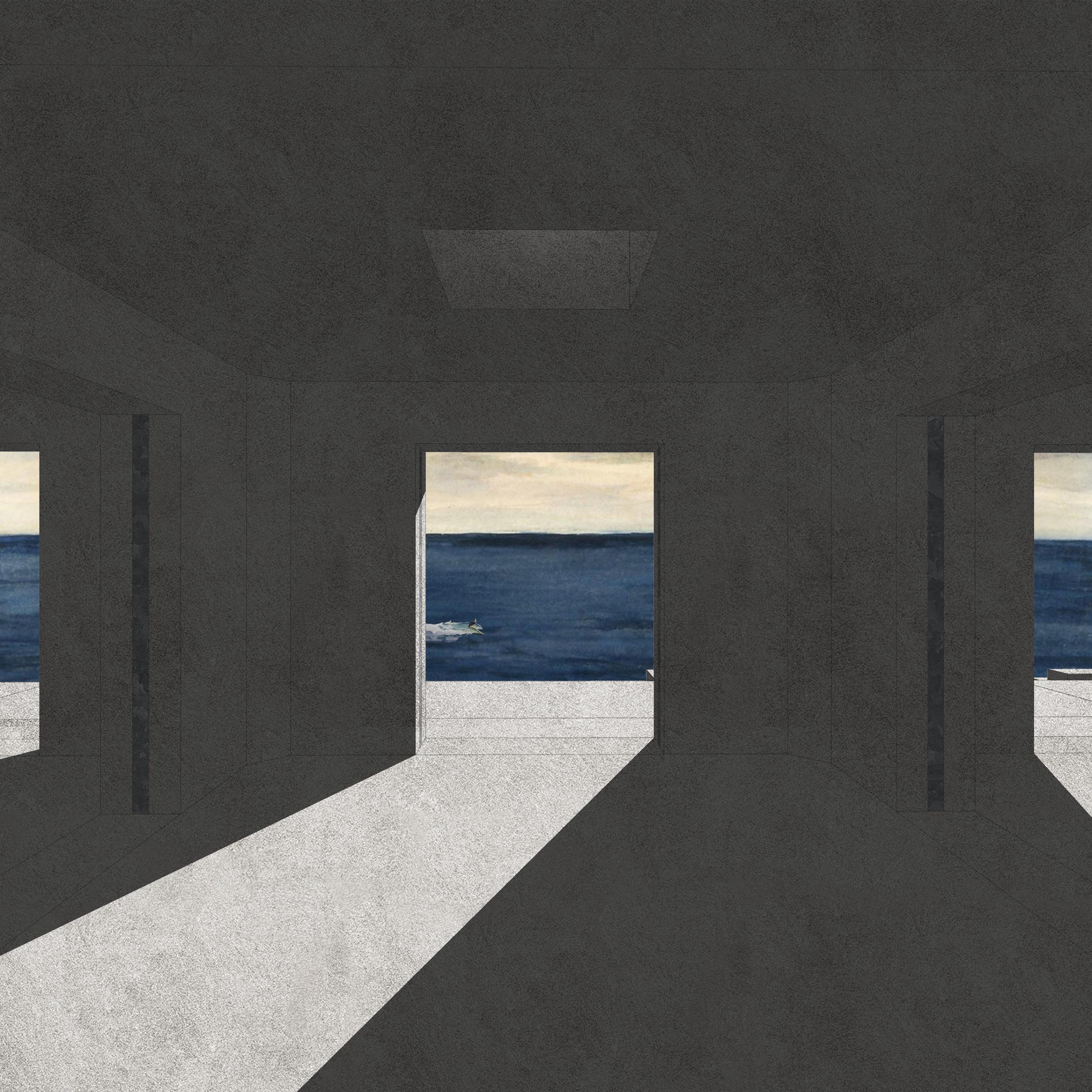De kamers openen zich aan de ene zijde naar de horizon van de zee, en aan de andere naar passerende schepen. Zo wordt de spanning tussen natuur en industrie steeds voelbaar.
