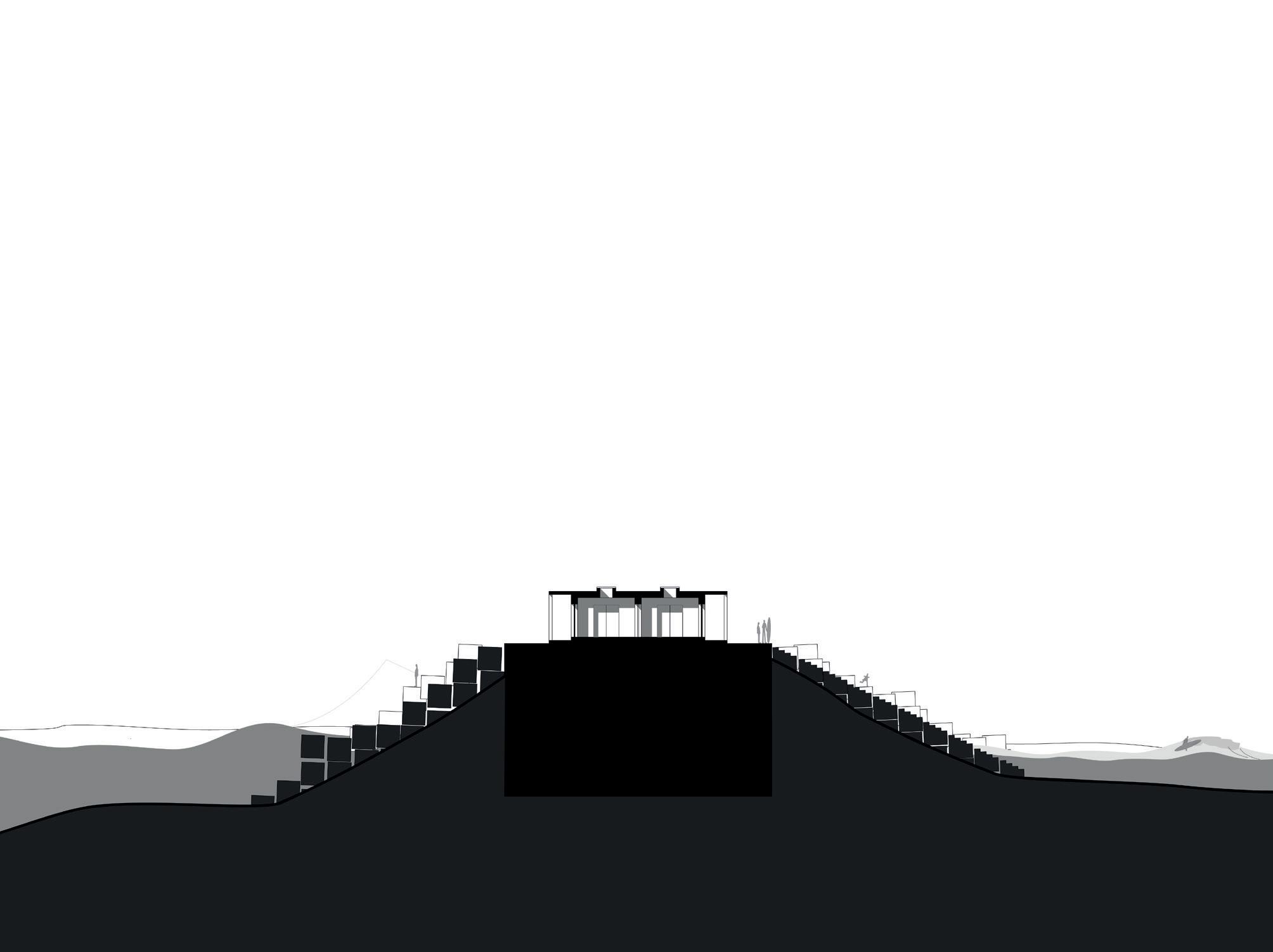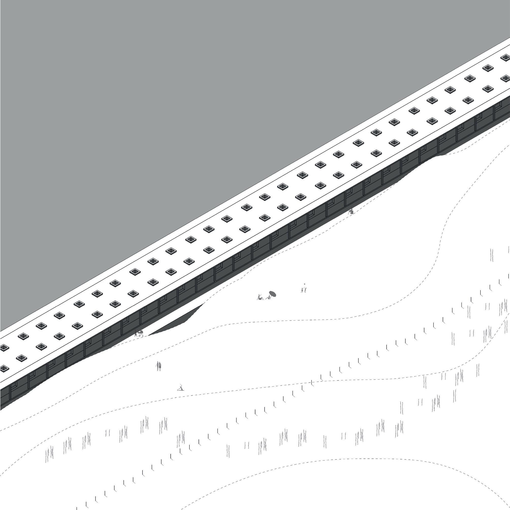 Dit project laat zien hoe de grens tussen civiele techniek en architectuur kan worden opgerekt ten dienste van maatschappelijke meerwaarde. Het resultaat is een hybride structuur die zich openstelt voor menselijke activiteit en verblijf, maar op termijn weer wordt opgenomen in een primaire waterkering.