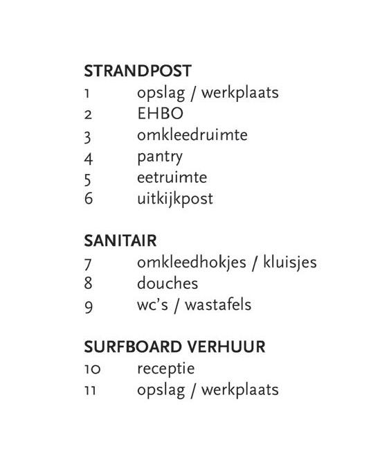 In de toekomstige ophogingslaag krijgen manchetten een dubbelgebruik: voorbereiding op dijkverhoging én ruimte voor programma. Hier ontstaat een surfaccommodatie met slaaphutten, sanitaire voorzieningen, kleedruimtes, surfschool en paviljoen.
