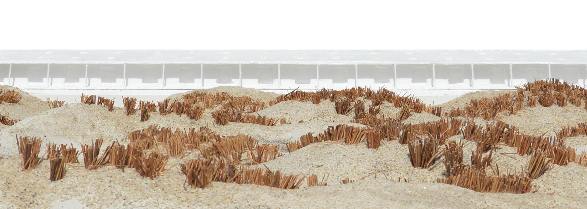 Het strand 2 De duinen Het ontwerp zoomt in op vijf fragmenten langs de dijk. Elk deel laat een andere relatie zien tussen duin, strand, kanaal en zee, samen een gelaagde kustervaring.