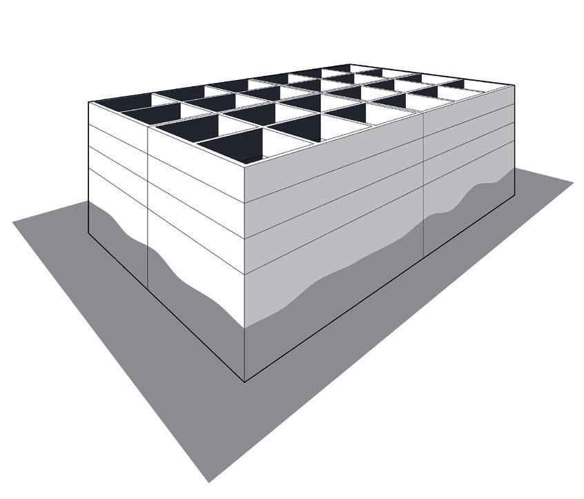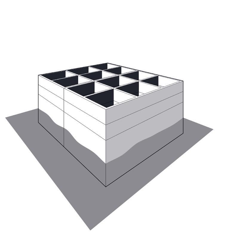 Het modulaire systeem maakt toekomstige ophoging eenvoudig mogelijk. De lege laag manchetten faciliteert dit, en bij ophoging worden kamers gevuld en de structuur weer volledig civiel. +12
