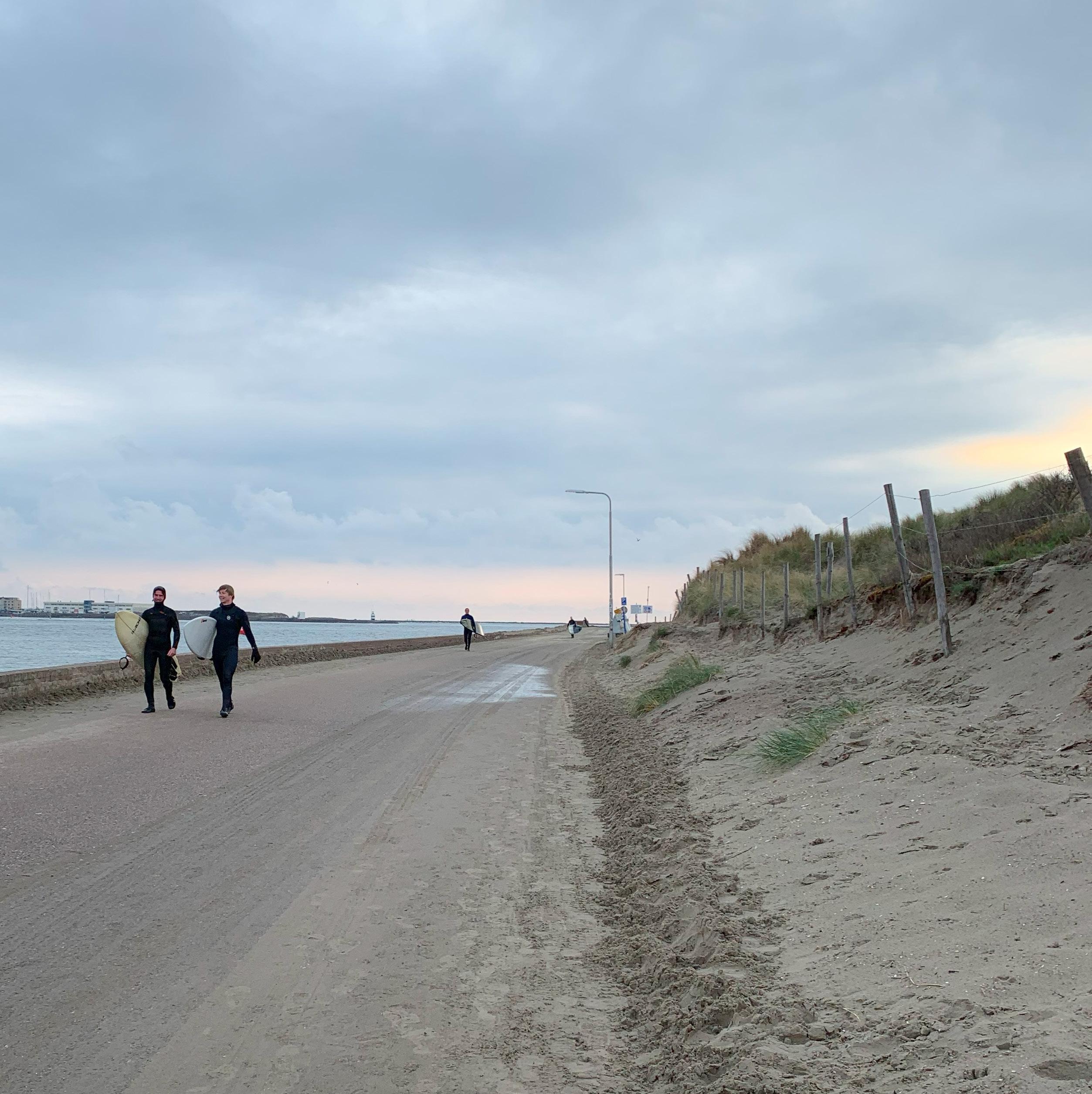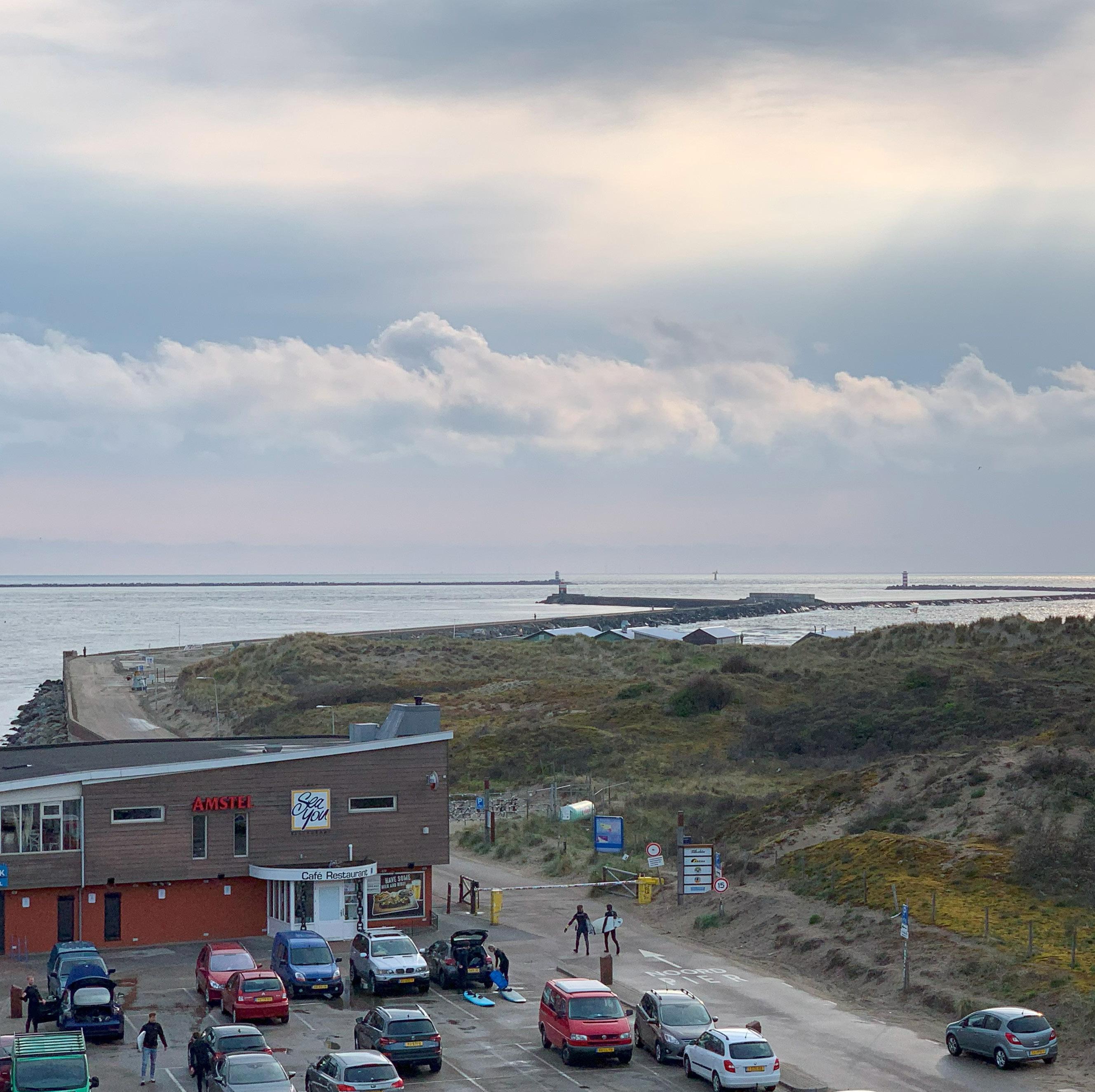 Het strand bij de Noordpier groeit door zandafzetting en vormt een breed speelveld voor surfers, wandelaars en strandactiviteiten. Het is de levendige overgangszone tussen dijk, duin en zee.