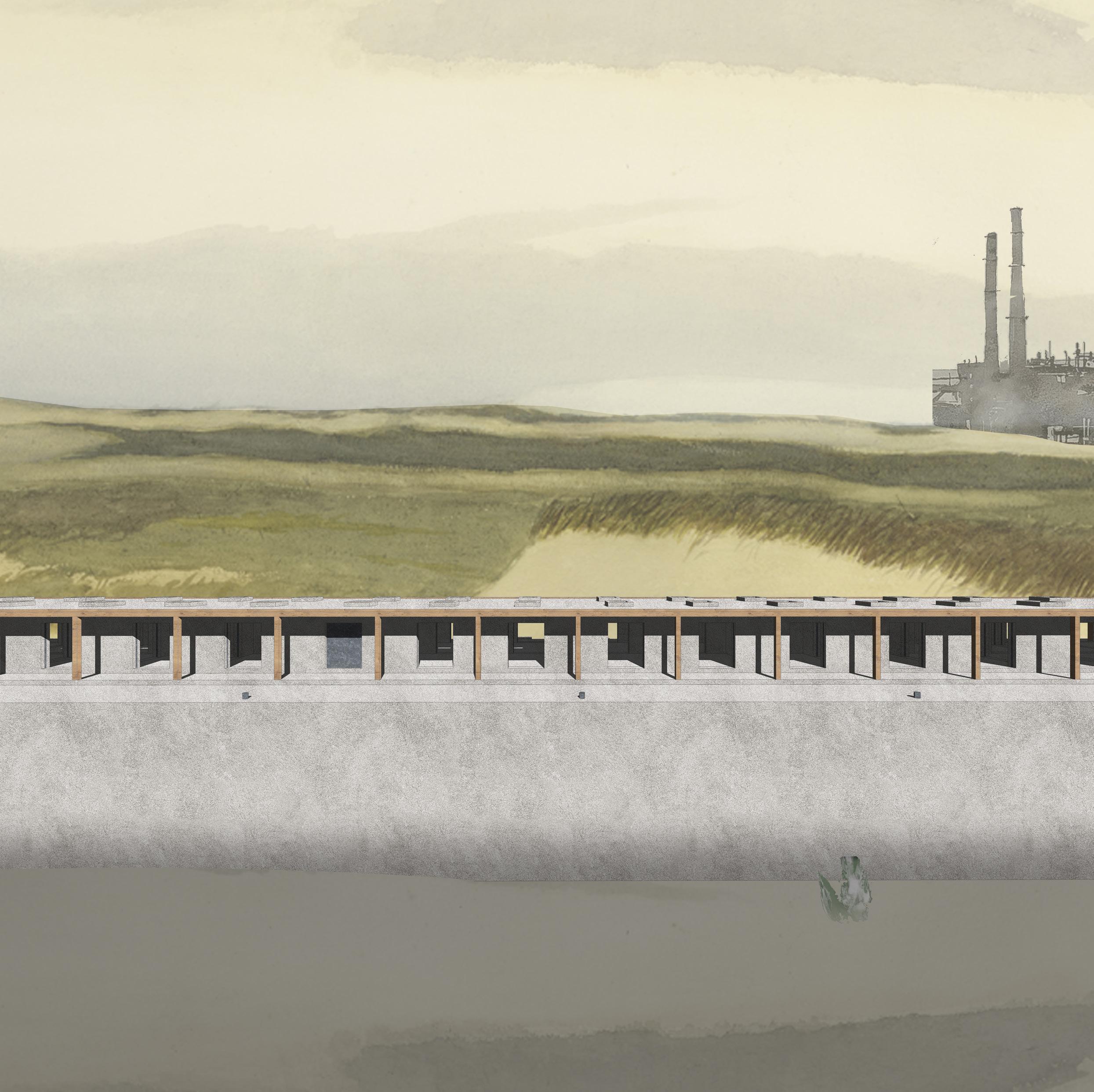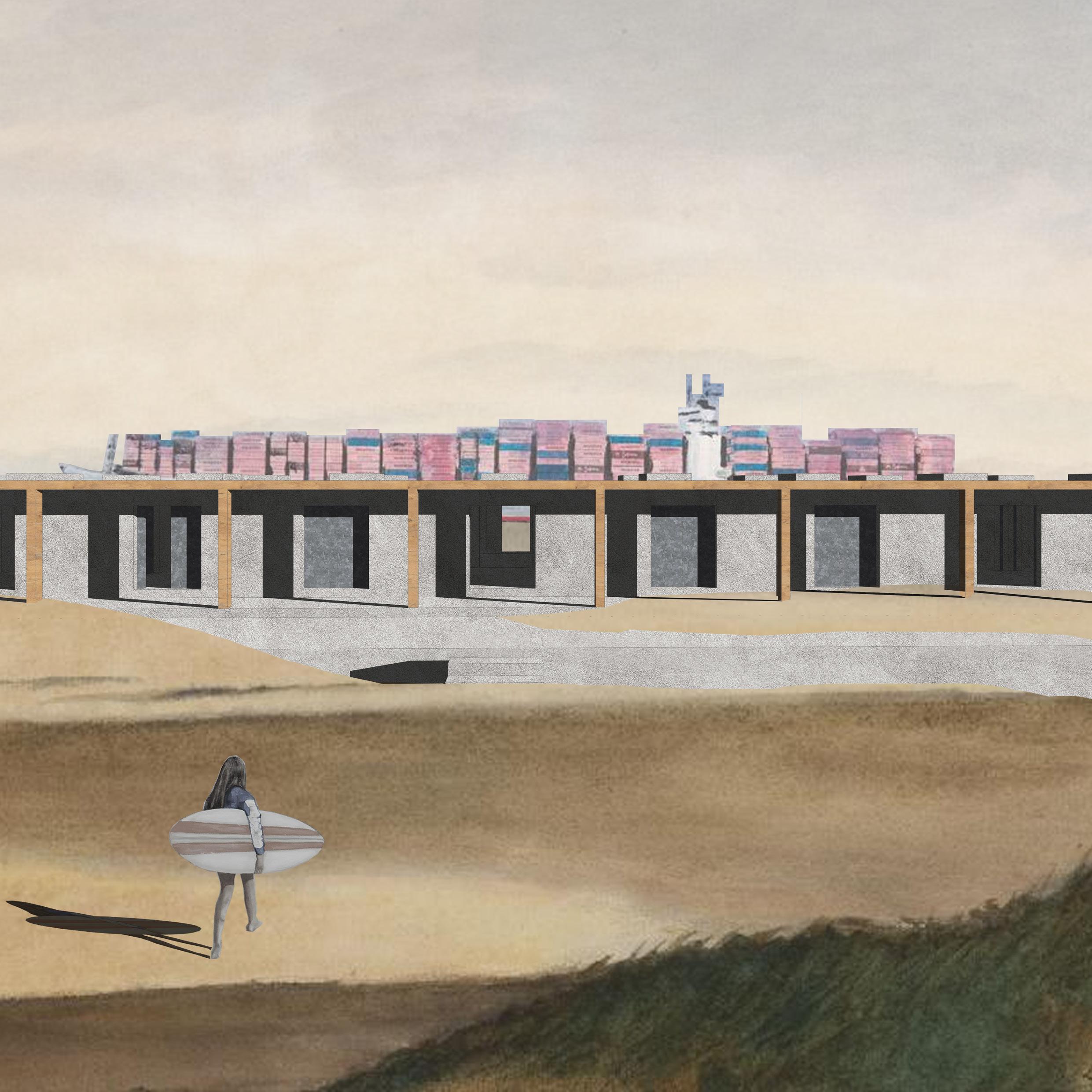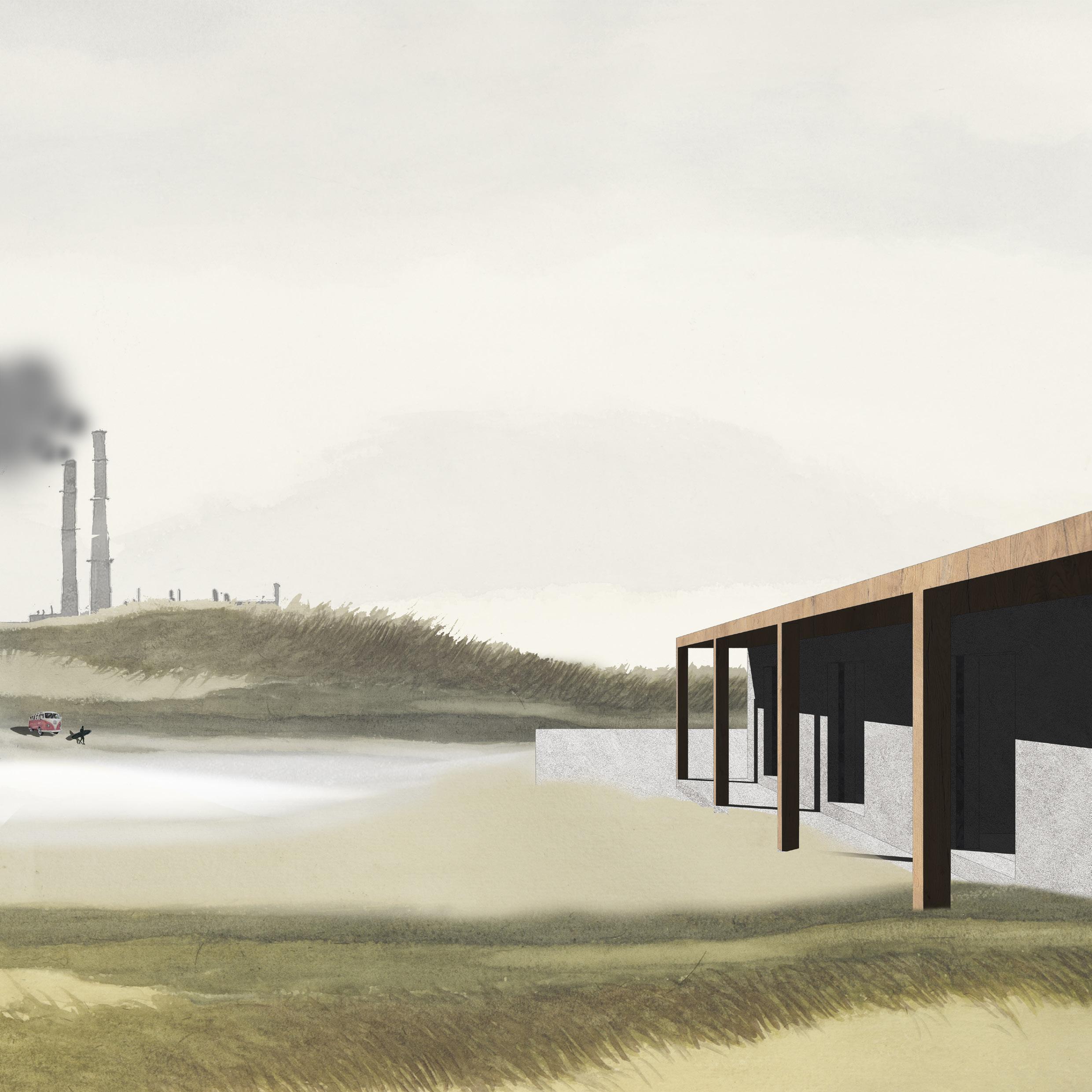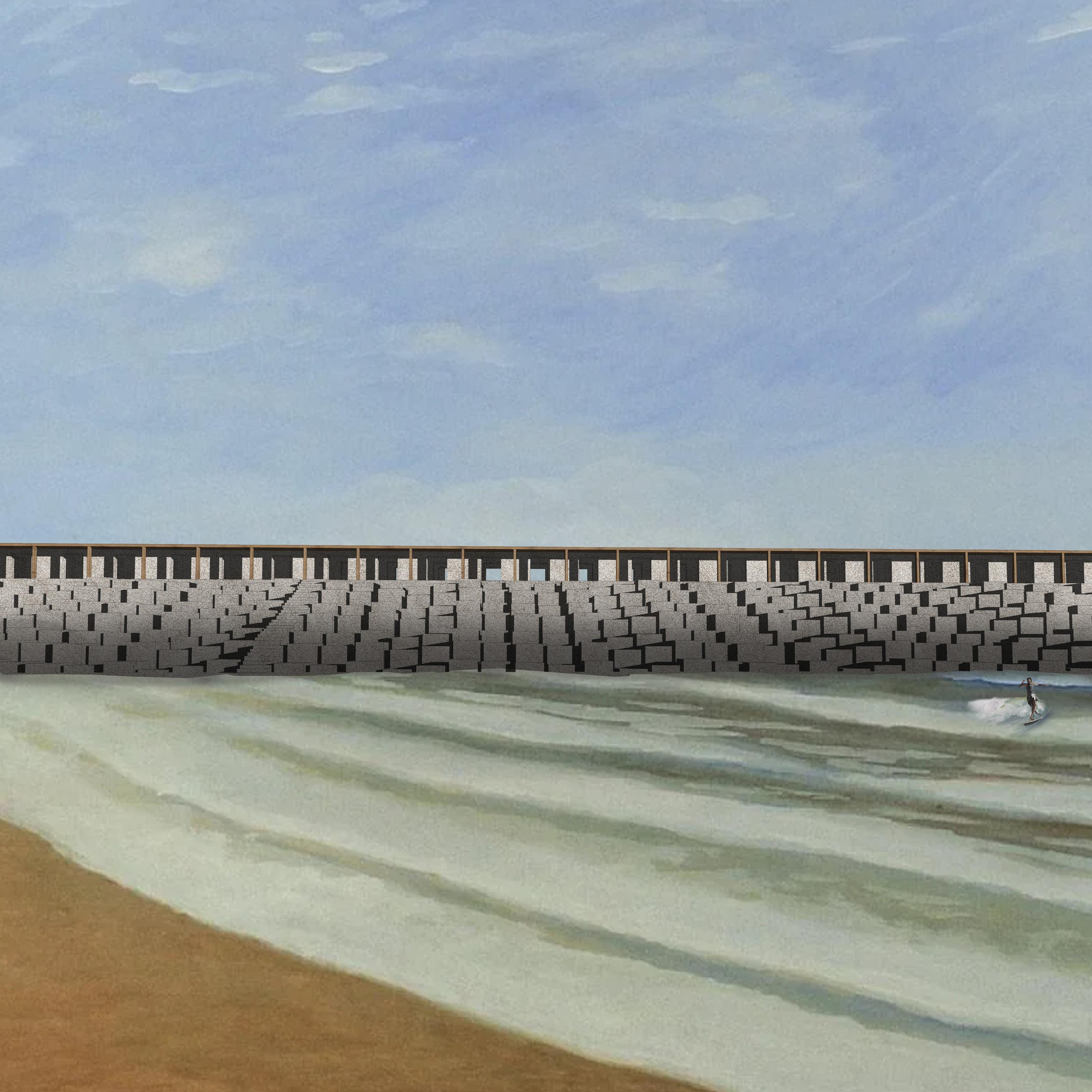 Dit afstudeerproject onderzoekt hoe civiele infrastructuur kan transformeren tot architectonische ruimte. Aanvankelijk gepland in Biarritz, verschoof de locatie door coronabeperkingen naar Wijk aan Zee: een plek met een bijzondere spanning tussen zware industrie, natuurlijke duinen, strand en zee.
