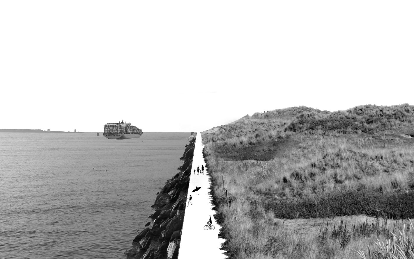Door ontwerp en infrastructuur te integreren, ontstaat een nieuw perspectief op hoe we onze dijken kunnen gebruiken: niet alleen als beschermingsobject, maar ook als publieke ruimte. Dit project is in die zin zowel een architectonisch ontwerp, een ruimtelijk systeem als een landschappelijke strategie.