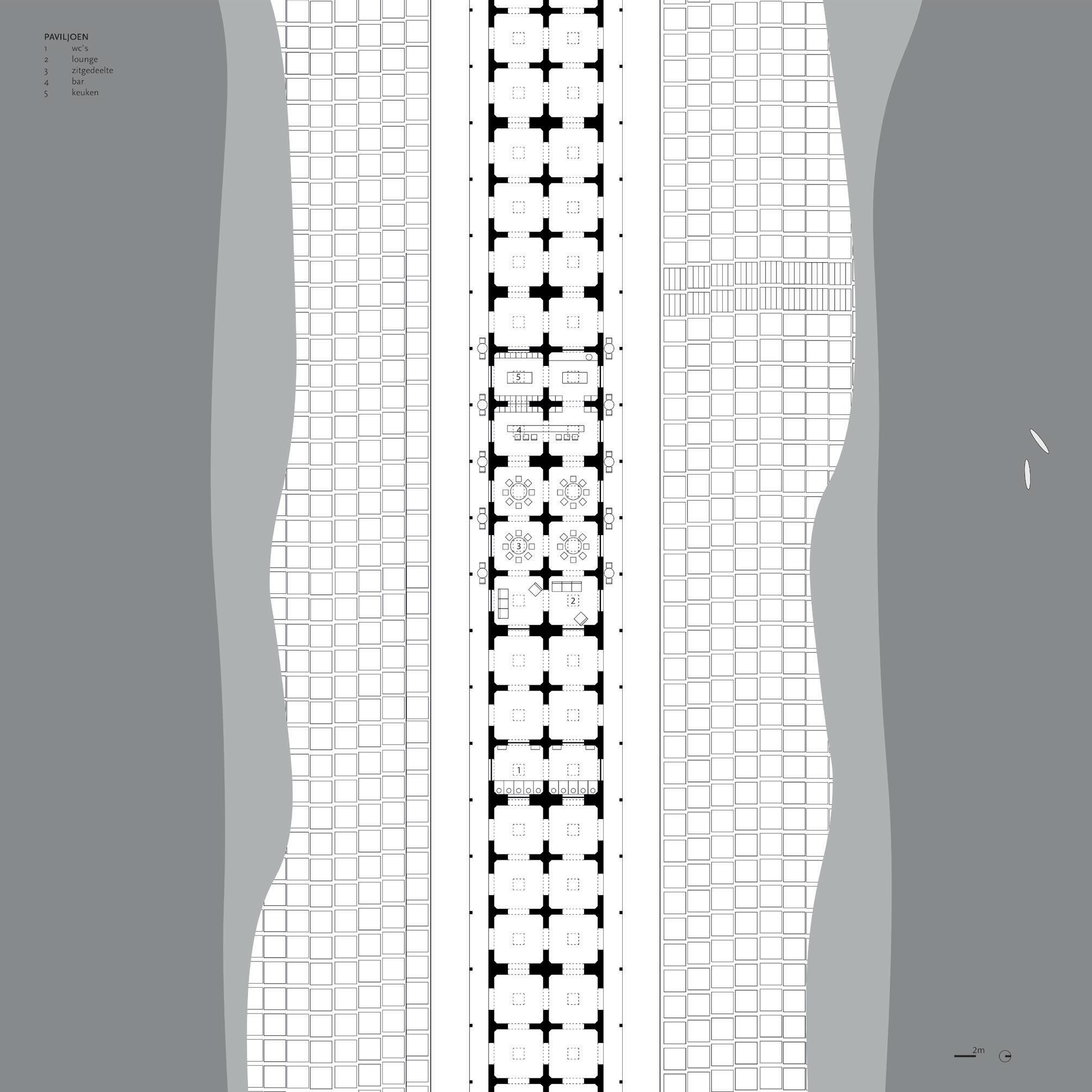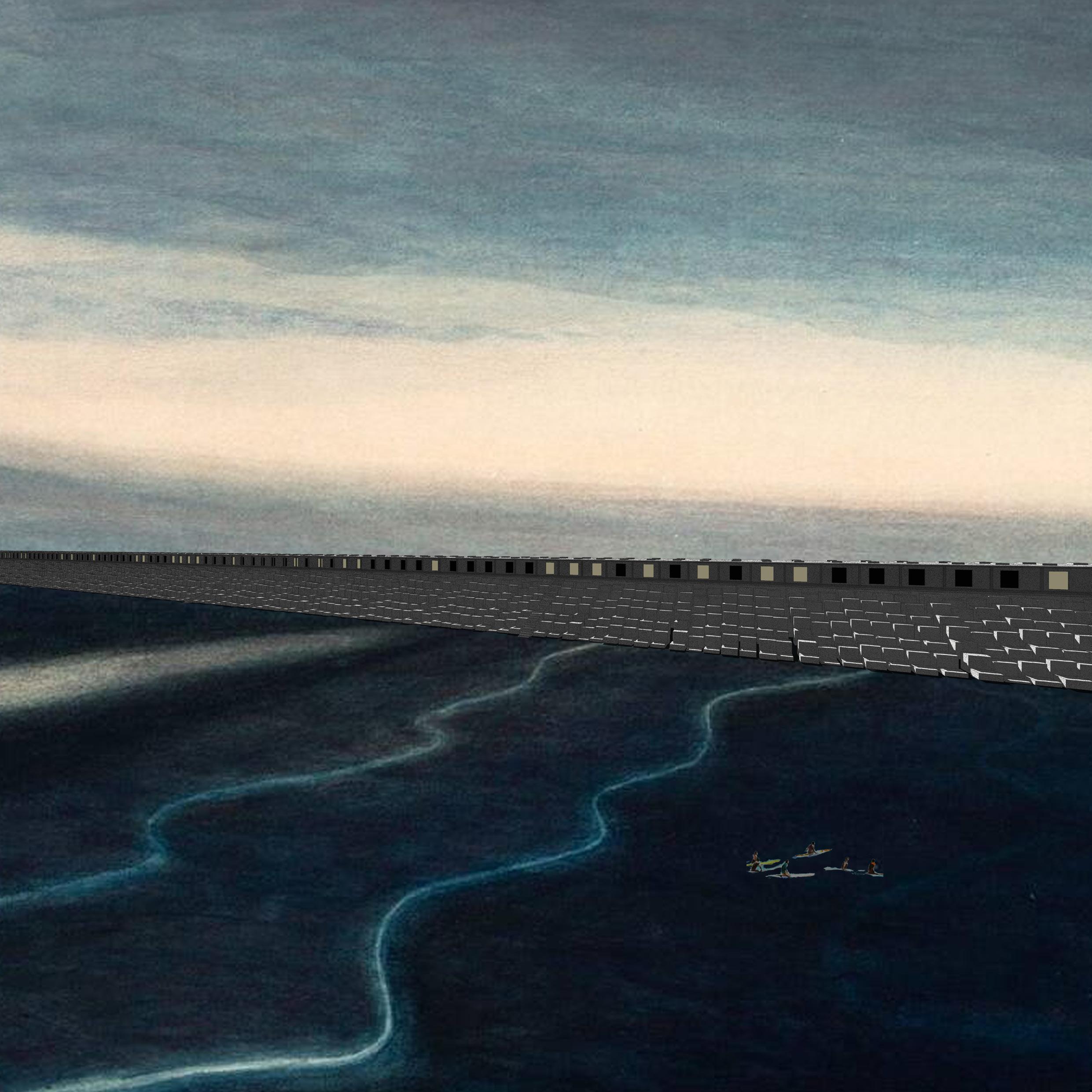 Hoe kan een civiel object worden getransformeerd tot architectonische ruimte, en later weer worden opgenomen in zijn oorspronkelijke civiele functie? Het project onderzoekt de relatie tussen permanente infrastructuur en adaptieve architectuur binnen de randvoorwaarden van het waterbouwkundig systeem.